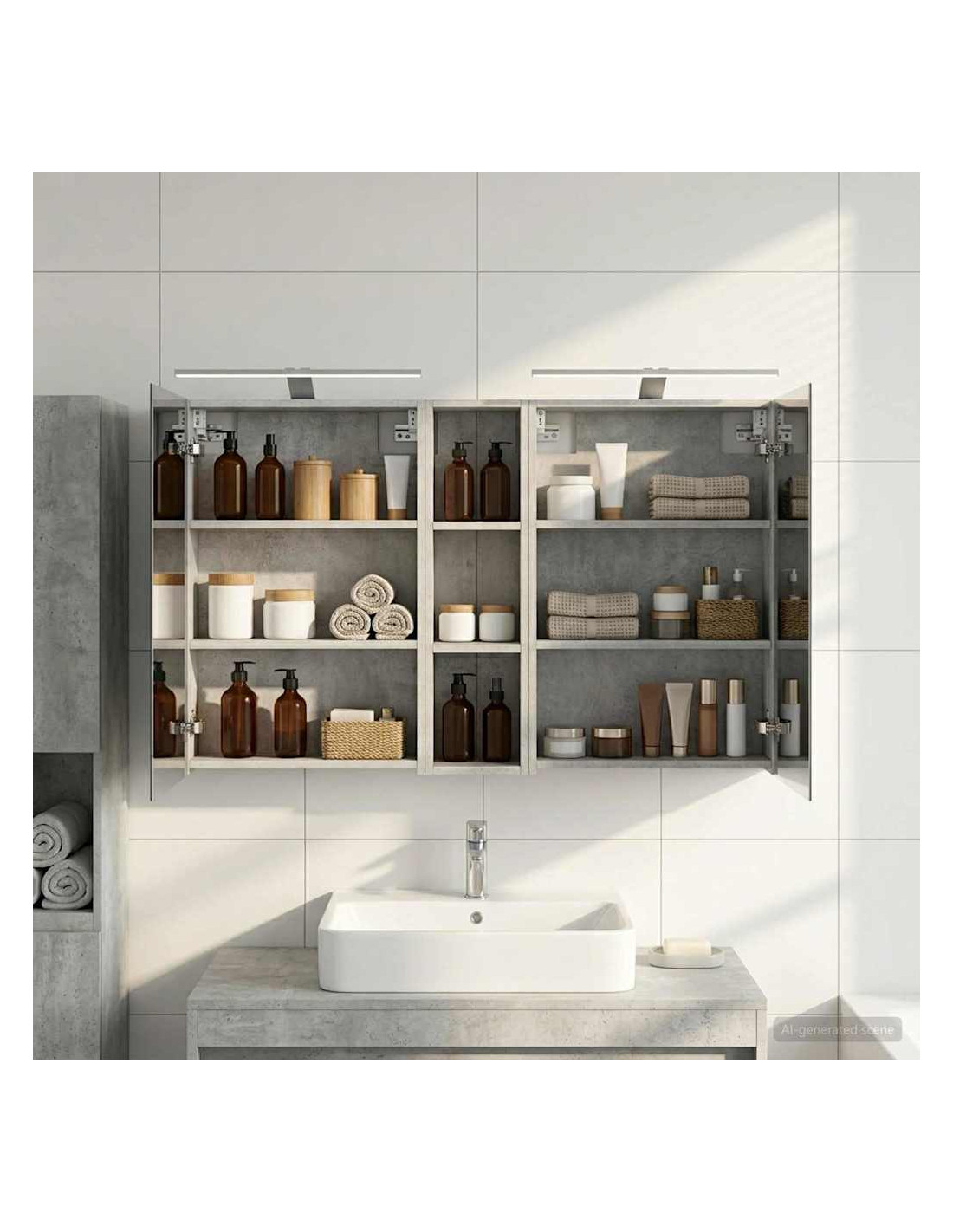 Questo set di armadi moderni per il bagno è il massimo in fatto di stile, combinando un design chic con funzioni pratiche. Creato per chi vive nella modernità, funge sia da spazio di stoccaggio che da decorazione bella, integrandosi perfettamente in ogni bagno. Con tanto spazio grazie alla sua struttura montata a parete, libera il pavimento, rendendo tutto facile da raggiungere. Il set di armadi dà un tocco di freschezza al bagno con lo specchio bifacciale e l'illuminazione LED incorporata, creando un ambiente curato e pronto per l'uso. Costruzione in legno ingegnerizzato Questo set è fatto in legno ingegnerizzato, apprezzato per la sua stabilità e resistenza. Non si deforma né si danneggia facilmente, assicurando un pezzo durevole per l'uso quotidiano. La finitura liscia ne facilita la cura, rendendolo un elemento a bassa manutenzione. Spazio di stoccaggio ampio Progettato per l'utilizzo efficiente, l'armadio da bagno offre tanto spazio con ripiani e porte a cerniera. La disposizione intelligente consente di tenere tutto a portata, garantendo un'organizzazione semplice. Il design salva spazio migliora la funzionalità e riduce il disordine. Specchio bifacciale innovativo Con un specchio bifacciale, questo armadio unisce privacy e visibilità. Il lato esterno è uno specchio standard, mentre quello interno permette una visione discreta, aggiungendo un tocco di classe. Questo elemento arricchisce gli interni moderni grazie alla sua doppia funzione. Illuminazione a striscia LED efficiente Dotato di luci LED USB, illumina gli spazi con una luce bella e a risparmio energetico. Le luci aumentano la visibilità, specialmente di notte, creando un'atmosfera serena e accogliente. Ottimo per chi cerca illuminazione moderna accoppiata a mobili funzionali. Manutenzione e cura semplici Mantenere questo set di armadi è facilissimo. Basta usare un panno morbido e asciutto per le superfici, evitando prodotti chimici aggressivi per preservare il materiale. Queste semplici istruzioni di cura assicurano che l'armadio rimanga un pezzo utile e sempre attuale nel tuo bagno.