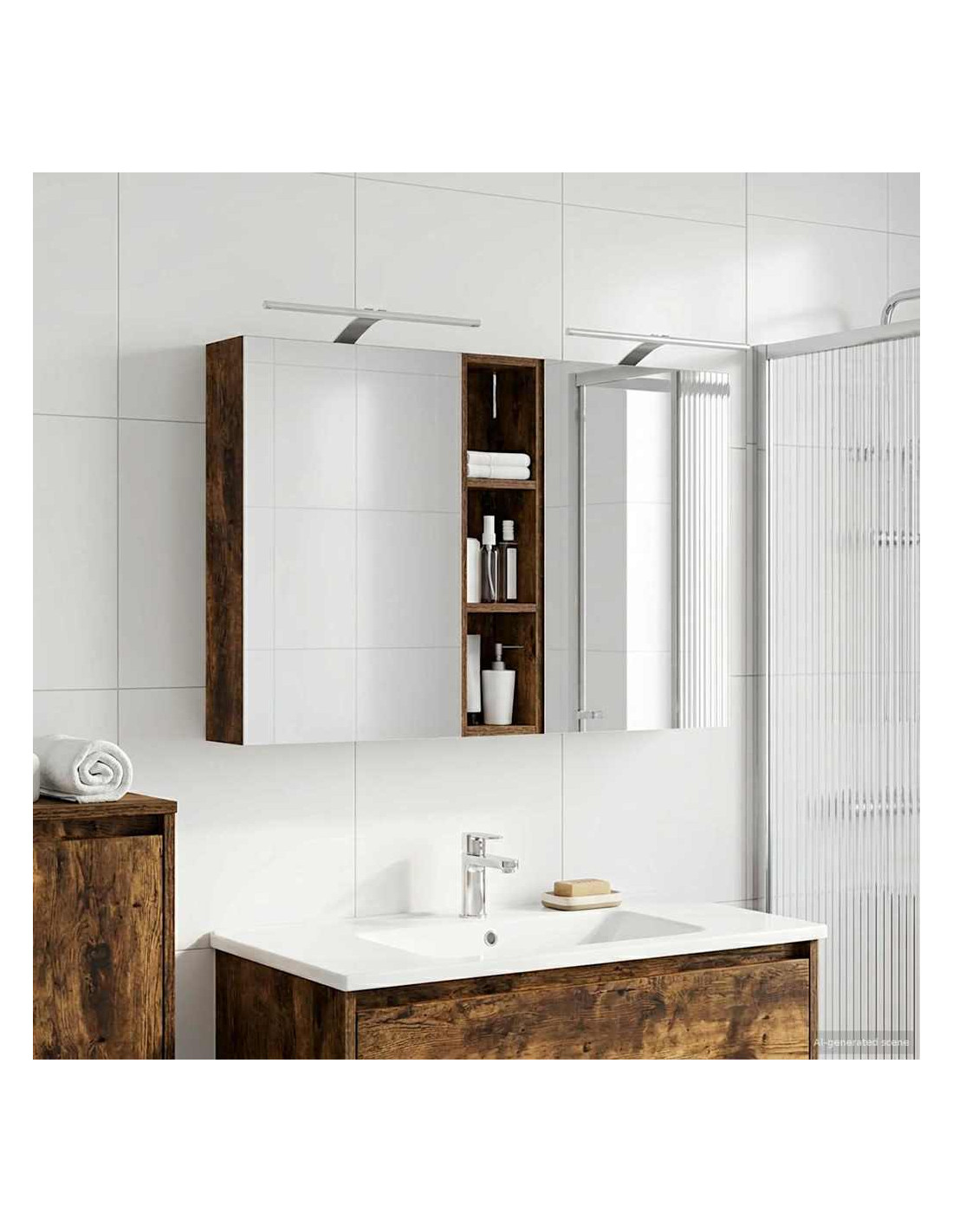 Questo set di armadi moderni per il bagno è il massimo in fatto di stile, combinando un design chic con funzioni pratiche. Creato per chi vive nella modernità, funge sia da spazio di stoccaggio che da decorazione bella, integrandosi perfettamente in ogni bagno. Con tanto spazio grazie alla sua struttura montata a parete, libera il pavimento, rendendo tutto facile da raggiungere. Il set di armadi dà un tocco di freschezza al bagno con lo specchio bifacciale e l'illuminazione LED incorporata, creando un ambiente curato e pronto per l'uso. Costruzione in legno ingegnerizzato Questo set è fatto in legno ingegnerizzato, apprezzato per la sua stabilità e resistenza. Non si deforma né si danneggia facilmente, assicurando un pezzo durevole per l'uso quotidiano. La finitura liscia ne facilita la cura, rendendolo un elemento a bassa manutenzione. Spazio di stoccaggio ampio Progettato per l'utilizzo efficiente, l'armadio da bagno offre tanto spazio con ripiani e porte a cerniera. La disposizione intelligente consente di tenere tutto a portata, garantendo un'organizzazione semplice. Il design salva spazio migliora la funzionalità e riduce il disordine. Specchio bifacciale innovativo Con un specchio bifacciale, questo armadio unisce privacy e visibilità. Il lato esterno è uno specchio standard, mentre quello interno permette una visione discreta, aggiungendo un tocco di classe. Questo elemento arricchisce gli interni moderni grazie alla sua doppia funzione. Illuminazione a striscia LED efficiente Dotato di luci LED USB, illumina gli spazi con una luce bella e a risparmio energetico. Le luci aumentano la visibilità, specialmente di notte, creando un'atmosfera serena e accogliente. Ottimo per chi cerca illuminazione moderna accoppiata a mobili funzionali. Manutenzione e cura semplici Mantenere questo set di armadi è facilissimo. Basta usare un panno morbido e asciutto per le superfici, evitando prodotti chimici aggressivi per preservare il materiale. Queste semplici istruzioni di cura assicurano che l'armadio rimanga un pezzo utile e sempre attuale nel tuo bagno.