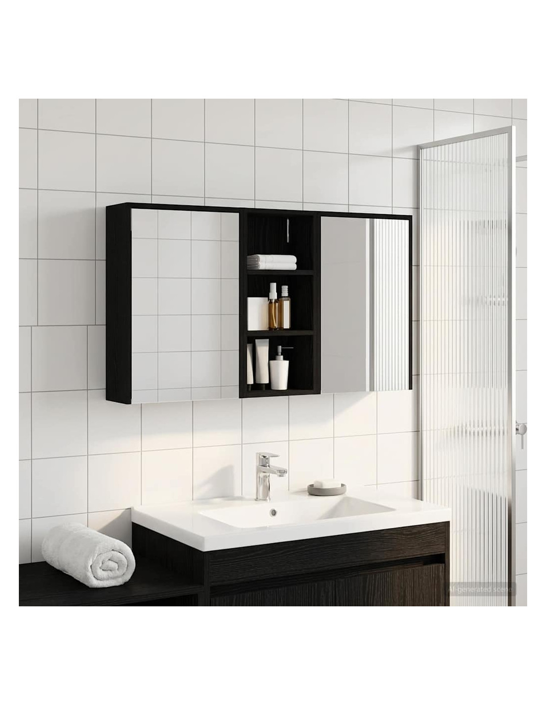 Questo Set di Armadi per Bagno è la soluzione perfetta per un bagno moderno, unendo design elegante e funzionalità. Realizzato in legno ingegnerizzato, l'armadio ha uno specchio bidirezionale che amplifica visivamente lo spazio e aggiunge un tocco di interesse. È ideale per proprietari di casa e designer, offrendo stoccaggio efficiente e migliorando l'estetica con il suo design minimalista e l'illuminazione a LED, rendendolo il perfetto mix di forma e funzione. Costruzione in Legno Ingegnerizzato: L'armadio è fatto in legno ingegnerizzato, robusto e durevole, che mantiene un aspetto impeccabile anche in condizioni di umidità. Facile da pulire e resistente all'usura. Ante a Doppia Funzione: Le porte in vetro a cerniera offrono un'apertura fluida e un design elegante. All'interno troverai scomparti spaziosi per articoli da bagno, aiutandoti a restare organizzato. Illuminazione Innovativa: Con strisce LED alimentate tramite USB, questo armadio offre un'illuminazione ideale per la cura personale, aggiungendo anche un tocco estetico alla stanza. Specchio Bidirezionale: Lo specchio unico aggiunge profondità e stile all'armadio, ideale per privacy e per riflessioni durante il trucco o la rasatura. Montaggio a Muro Facile: Questo armadio può essere facilmente montato sulle pareti, liberando spazio prezioso e garantendo un aspetto ordinato e organizzato.