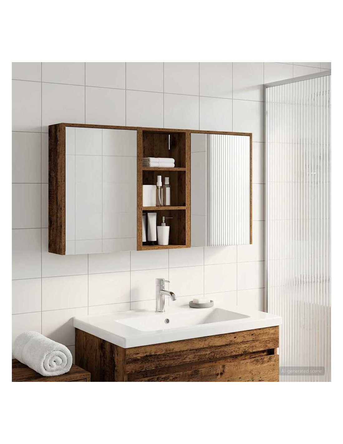 Questo Set di Armadi per Bagno è la soluzione perfetta per un bagno moderno, unendo design elegante e funzionalità. Realizzato in legno ingegnerizzato, l'armadio ha uno specchio bidirezionale che amplifica visivamente lo spazio e aggiunge un tocco di interesse. È ideale per proprietari di casa e designer, offrendo stoccaggio efficiente e migliorando l'estetica con il suo design minimalista e l'illuminazione a LED, rendendolo il perfetto mix di forma e funzione. Costruzione in Legno Ingegnerizzato: L'armadio è fatto in legno ingegnerizzato, robusto e durevole, che mantiene un aspetto impeccabile anche in condizioni di umidità. Facile da pulire e resistente all'usura. Ante a Doppia Funzione: Le porte in vetro a cerniera offrono un'apertura fluida e un design elegante. All'interno troverai scomparti spaziosi per articoli da bagno, aiutandoti a restare organizzato. Illuminazione Innovativa: Con strisce LED alimentate tramite USB, questo armadio offre un'illuminazione ideale per la cura personale, aggiungendo anche un tocco estetico alla stanza. Specchio Bidirezionale: Lo specchio unico aggiunge profondità e stile all'armadio, ideale per privacy e per riflessioni durante il trucco o la rasatura. Montaggio a Muro Facile: Questo armadio può essere facilmente montato sulle pareti, liberando spazio prezioso e garantendo un aspetto ordinato e organizzato.