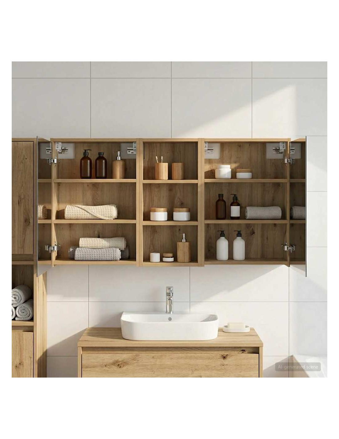 Questo Set di Armadi per Bagno è la soluzione perfetta per un bagno moderno, unendo design elegante e funzionalità. Realizzato in legno ingegnerizzato, l'armadio ha uno specchio bidirezionale che amplifica visivamente lo spazio e aggiunge un tocco di interesse. È ideale per proprietari di casa e designer, offrendo stoccaggio efficiente e migliorando l'estetica con il suo design minimalista e l'illuminazione a LED, rendendolo il perfetto mix di forma e funzione. Costruzione in Legno Ingegnerizzato: L'armadio è fatto in legno ingegnerizzato, robusto e durevole, che mantiene un aspetto impeccabile anche in condizioni di umidità. Facile da pulire e resistente all'usura. Ante a Doppia Funzione: Le porte in vetro a cerniera offrono un'apertura fluida e un design elegante. All'interno troverai scomparti spaziosi per articoli da bagno, aiutandoti a restare organizzato. Illuminazione Innovativa: Con strisce LED alimentate tramite USB, questo armadio offre un'illuminazione ideale per la cura personale, aggiungendo anche un tocco estetico alla stanza. Specchio Bidirezionale: Lo specchio unico aggiunge profondità e stile all'armadio, ideale per privacy e per riflessioni durante il trucco o la rasatura. Montaggio a Muro Facile: Questo armadio può essere facilmente montato sulle pareti, liberando spazio prezioso e garantendo un aspetto ordinato e organizzato.