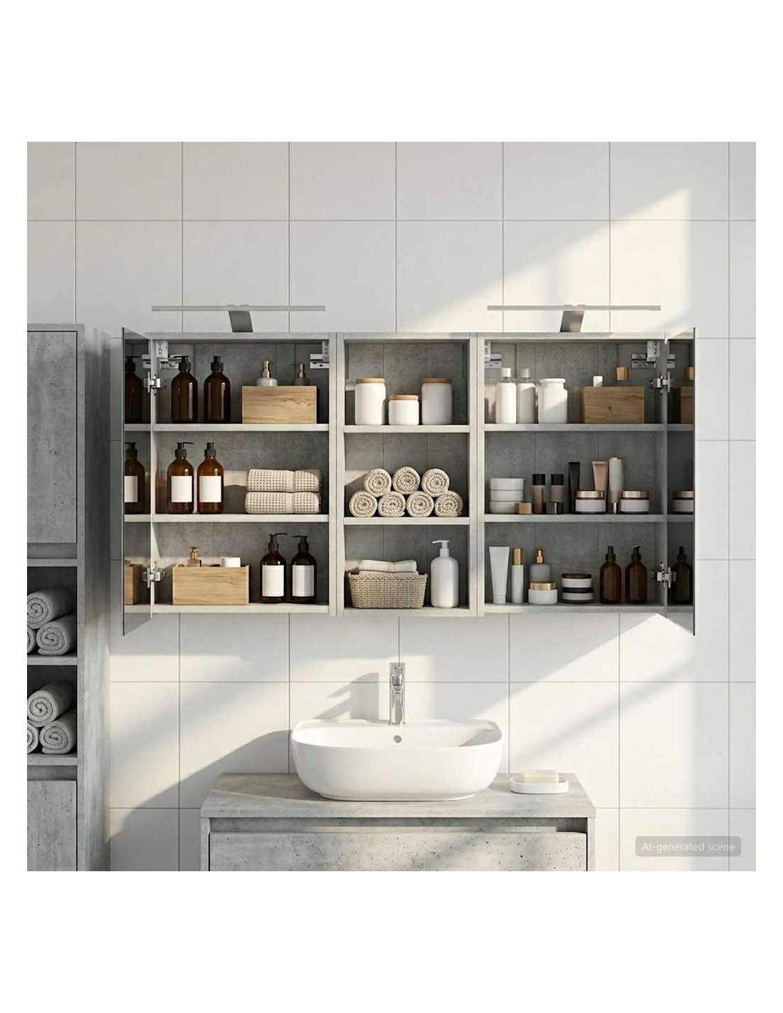 Questo Set di Armadi per Bagno è la soluzione perfetta per un bagno moderno, unendo design elegante e funzionalità. Realizzato in legno ingegnerizzato, l'armadio ha uno specchio bidirezionale che amplifica visivamente lo spazio e aggiunge un tocco di interesse. È ideale per proprietari di casa e designer, offrendo stoccaggio efficiente e migliorando l'estetica con il suo design minimalista e l'illuminazione a LED, rendendolo il perfetto mix di forma e funzione. Costruzione in Legno Ingegnerizzato: L'armadio è fatto in legno ingegnerizzato, robusto e durevole, che mantiene un aspetto impeccabile anche in condizioni di umidità. Facile da pulire e resistente all'usura. Ante a Doppia Funzione: Le porte in vetro a cerniera offrono un'apertura fluida e un design elegante. All'interno troverai scomparti spaziosi per articoli da bagno, aiutandoti a restare organizzato. Illuminazione Innovativa: Con strisce LED alimentate tramite USB, questo armadio offre un'illuminazione ideale per la cura personale, aggiungendo anche un tocco estetico alla stanza. Specchio Bidirezionale: Lo specchio unico aggiunge profondità e stile all'armadio, ideale per privacy e per riflessioni durante il trucco o la rasatura. Montaggio a Muro Facile: Questo armadio può essere facilmente montato sulle pareti, liberando spazio prezioso e garantendo un aspetto ordinato e organizzato.