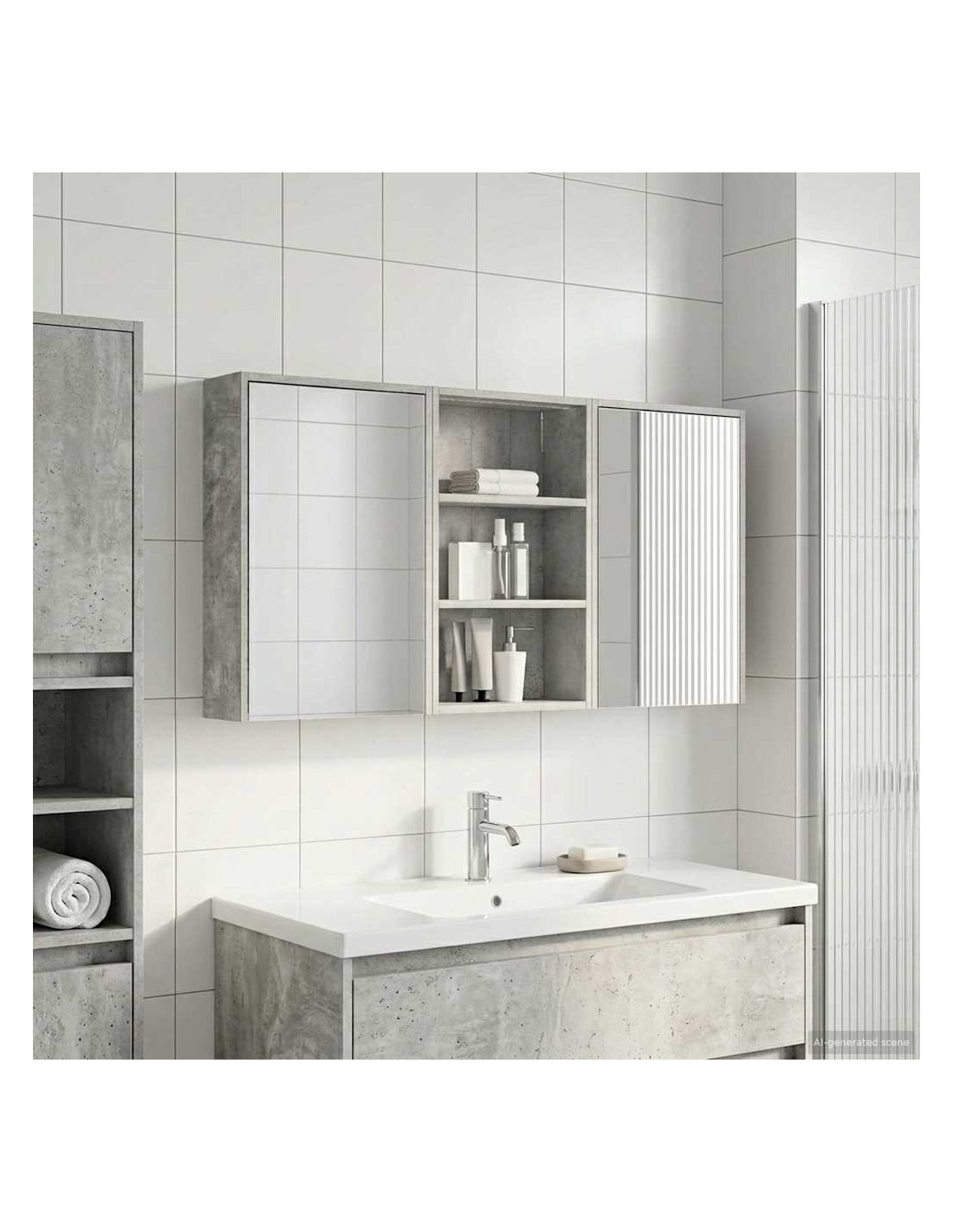 Questo Set di Armadi per Bagno è la soluzione perfetta per un bagno moderno, unendo design elegante e funzionalità. Realizzato in legno ingegnerizzato, l'armadio ha uno specchio bidirezionale che amplifica visivamente lo spazio e aggiunge un tocco di interesse. È ideale per proprietari di casa e designer, offrendo stoccaggio efficiente e migliorando l'estetica con il suo design minimali