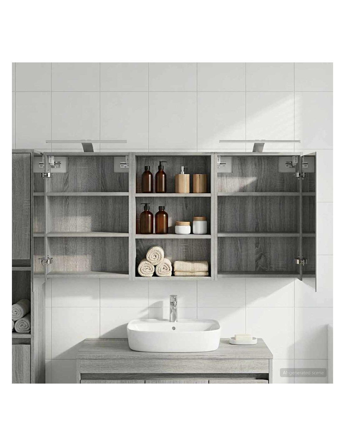 Questo Set di Armadi per Bagno è la soluzione perfetta per un bagno moderno, unendo design elegante e funzionalità. Realizzato in legno ingegnerizzato, l'armadio ha uno specchio bidirezionale che amplifica visivamente lo spazio e aggiunge un tocco di interesse. È ideale per proprietari di casa e designer, offrendo stoccaggio efficiente e migliorando l'estetica con il suo design minimalista e l'illuminazione a LED, rendendolo il perfetto mix di forma e funzione. Costruzione in Legno Ingegnerizzato: L'armadio è fatto in legno ingegnerizzato, robusto e durevole, che mantiene un aspetto impeccabile anche in condizioni di umidità. Facile da pulire e resistente all'usura. Ante a Doppia Funzione: Le porte in vetro a cerniera offrono un'apertura fluida e un design elegante. All'interno troverai scomparti spaziosi per articoli da bagno, aiutandoti a restare organizzato. Illuminazione Innovativa: Con strisce LED alimentate tramite USB, questo armadio offre un'illuminazione ideale per la cura personale, aggiungendo anche un tocco estetico alla stanza. Specchio Bidirezionale: Lo specchio unico aggiunge profondità e stile all'armadio, ideale per privacy e per riflessioni durante il trucco o la rasatura. Montaggio a Muro Facile: Questo armadio può essere facilmente montato sulle pareti, liberando spazio prezioso e garantendo un aspetto ordinato e organizzato.