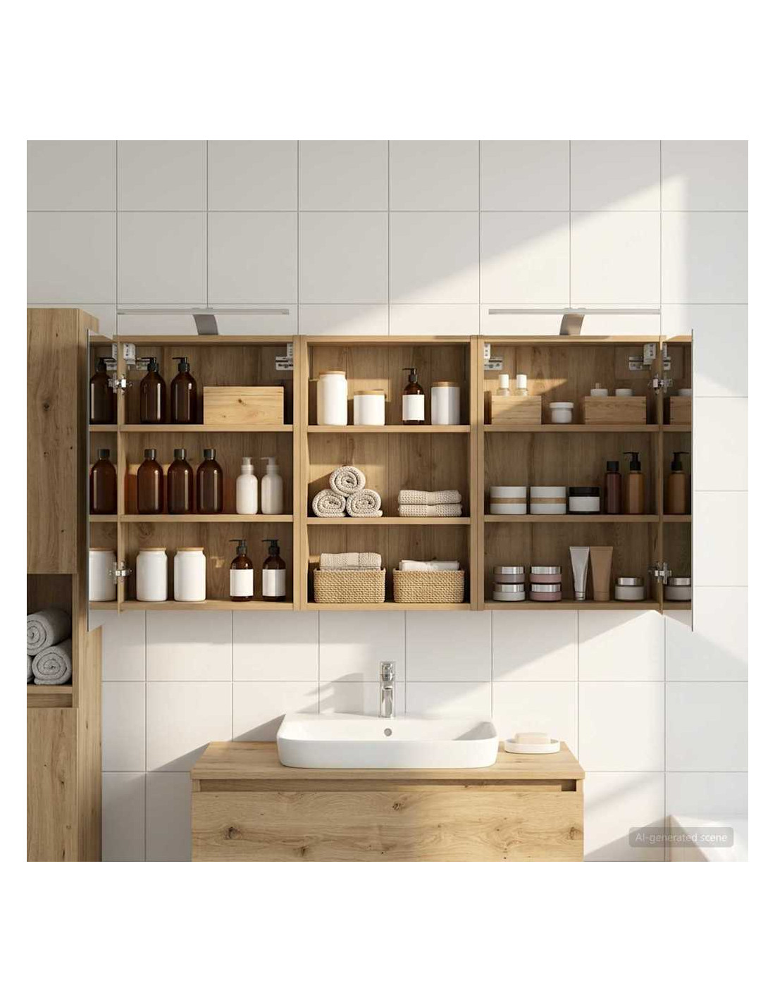Questo Set di Armadi per Bagno è la soluzione perfetta per un bagno moderno, unendo design elegante e funzionalità. Realizzato in legno ingegnerizzato, l'armadio ha uno specchio bidirezionale che amplifica visivamente lo spazio e aggiunge un tocco di interesse. È ideale per proprietari di casa e designer, offrendo stoccaggio efficiente e migliorando l'estetica con il suo design minimalista e l'illuminazione a LED, rendendolo il perfetto mix di forma e funzione. Costruzione in Legno Ingegnerizzato: L'armadio è fatto in legno ingegnerizzato, robusto e durevole, che mantiene un aspetto impeccabile anche in condizioni di umidità. Facile da pulire e resistente all'usura. Ante a Doppia Funzione: Le porte in vetro a cerniera offrono un'apertura fluida e un design elegante. All'interno troverai scomparti spaziosi per articoli da bagno, aiutandoti a restare organizzato. Illuminazione Innovativa: Con strisce LED alimentate tramite USB, questo armadio offre un'illuminazione ideale per la cura personale, aggiungendo anche un tocco estetico alla stanza. Specchio Bidirezionale: Lo specchio unico aggiunge profondità e stile all'armadio, ideale per privacy e per riflessioni durante il trucco o la rasatura. Montaggio a Muro Facile: Questo armadio può essere facilmente montato sulle pareti, liberando spazio prezioso e garantendo un aspetto ordinato e organizzato.