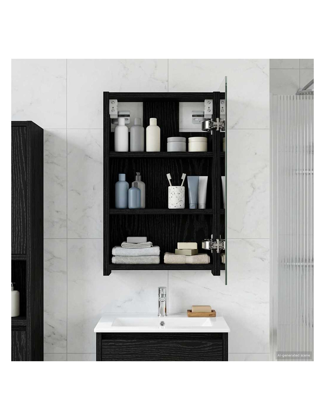Questo armadietto a specchio moderno è la soluzione ideale per il tuo bagno. Ha un design contemporaneo, con linee pulite e minimaliste, che migliora l'arredamento. Offre abbondante spazio per riporre i tuoi essenziali e lo specchio bidirezionale è pratico e di grande impatto estetico. Costruzione in legno ingegnerizzato : Questo armadietto è realizzato in legno ingegnerizzato di alta qualità, resistente e duraturo. Grazie a questo materiale, rimarrà in ottime condizioni nel tempo. La finitura liscia conferisce un aspetto moderno, perfetto per ogni bagno. Specchio bidirezionale : Con uno specchio versatilissimo, questo armadietto ti permette di usarlo in vari modi. Da un lato è un normale specchio per le tue routine quotidiane; dall'altro, aggiunge un tocco di originalità. Questa caratteristica è utile in tante situazioni, da averne un rapido sguardo a fare chiacchiere davanti allo specchio. Design a montaggio a parete : Montando l'armadietto a parete, guadagni spazio sul pavimento, rendendolo perfetto per bagni di tutte le dimensioni. Ha un aspetto elegante e aiuta a mantenere l'ambiente ordinato, massimizzando lo spazio disponibile. È ideale per un look contemporaneo che fa colpo. Mensole in pannelli : Le mensole dell'armadietto, realizzate in legno ingegnerizzato, offrono uno spazio di stoccaggio sicuro e ben organizzato. Perfette per i tuoi prodotti da toeletta e altri essenziali, rimanendo sempre a portata di mano. Le mensole sono robuste e non cedono, mantenendo diligentemente tutto in ordine. Accesso a porta a cerniera : L'armadietto ha porte a cerniera che consentono di accedere facilmente ai tuoi oggetti. Aprono e chiudono senza fatica, assicurando una chiusura silenziosa e discreta. Questa funzionalità rende il tuo accesso facile e senza complicazioni.