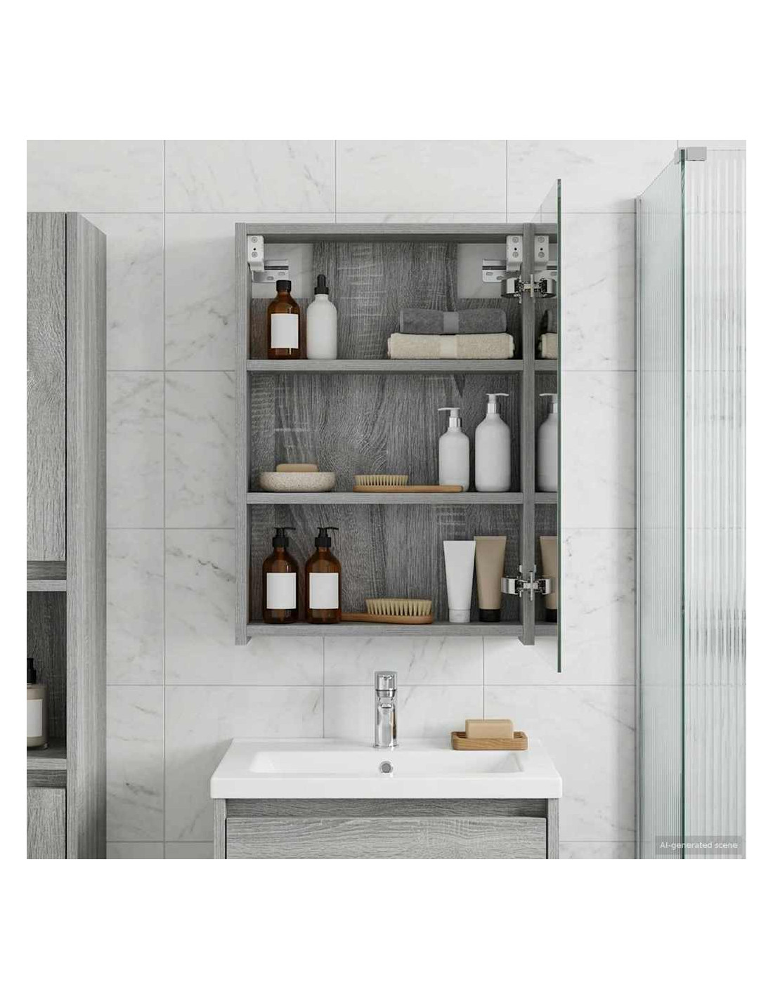 Questo armadietto a specchio moderno è la soluzione ideale per il tuo bagno. Ha un design contemporaneo, con linee pulite e minimaliste, che migliora l'arredamento. Offre abbondante spazio per riporre i tuoi essenziali e lo specchio bidirezionale è pratico e di grande impatto estetico. Costruzione in legno ingegnerizzato : Questo armadietto è realizzato in legno ingegnerizzato di alta qualità, resistente e duraturo. Grazie a questo materiale, rimarrà in ottime condizioni nel tempo. La finitura liscia conferisce un aspetto moderno, perfetto per ogni bagno. Specchio bidirezionale : Con uno specchio versatilissimo, questo armadietto ti permette di usarlo in vari modi. Da un lato è un normale specchio per le tue routine quotidiane; dall'altro, aggiunge un tocco di originalità. Questa caratteristica è utile in tante situazioni, da averne un rapido sguardo a fare chiacchiere davanti allo specchio. Design a montaggio a parete : Montando l'armadietto a parete, guadagni spazio sul pavimento, rendendolo perfetto per bagni di tutte le dimensioni. Ha un aspetto elegante e aiuta a mantenere l'ambiente ordinato, massimizzando lo spazio disponibile. È ideale per un look contemporaneo che fa colpo. Mensole in pannelli : Le mensole dell'armadietto, realizzate in legno ingegnerizzato, offrono uno spazio di stoccaggio sicuro e ben organizzato. Perfette per i tuoi prodotti da toeletta e altri essenziali, rimanendo sempre a portata di mano. Le mensole sono robuste e non cedono, mantenendo diligentemente tutto in ordine. Accesso a porta a cerniera : L'armadietto ha porte a cerniera che consentono di accedere facilmente ai tuoi oggetti. Aprono e chiudono senza fatica, assicurando una chiusura silenziosa e discreta. Questa funzionalità rende il tuo accesso facile e senza complicazioni.