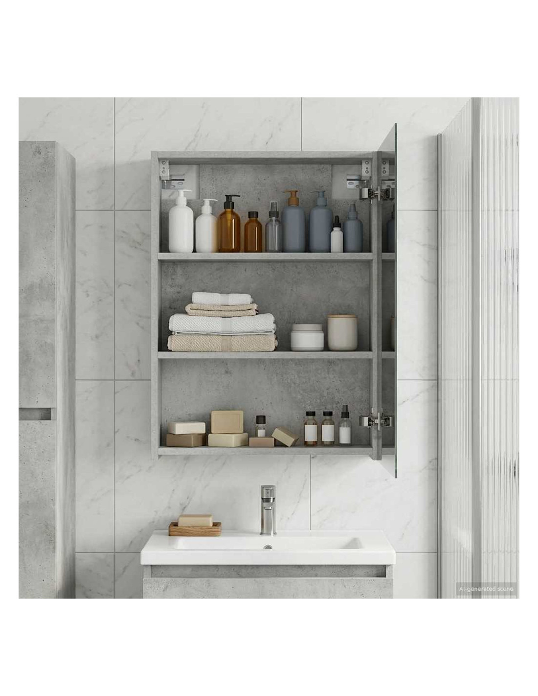 Questo armadietto a specchio moderno è la soluzione ideale per il tuo bagno. Ha un design contemporaneo, con linee pulite e minimaliste, che migliora l'arredamento. Offre abbondante spazio per riporre i tuoi essenziali e lo specchio bidirezionale è pratico e di grande impatto estetico. Costruzione in legno ingegnerizzato : Questo armadietto è realizzato in legno ingegnerizzato di alta qualità, resistente e duraturo. Grazie a questo materiale, rimarrà in ottime condizioni nel tempo. La finitura liscia conferisce un aspetto moderno, perfetto per ogni bagno. Specchio bidirezionale : Con uno specchio versatilissimo, questo armadietto ti permette di usarlo in vari modi. Da un lato è un normale specchio per le tue routine quotidiane; dall'altro, aggiunge un tocco di originalità. Questa caratteristica è utile in tante situazioni, da averne un rapido sguardo a fare chiacchiere davanti allo specchio. Design a montaggio a parete : Montando l'armadietto a parete, guadagni spazio sul pavimento, rendendolo perfetto per bagni di tutte le dimensioni. Ha un aspetto elegante e aiuta a mantenere l'ambiente ordinato, massimizzando lo spazio disponibile. È ideale per un look contemporaneo che fa colpo. Mensole in pannelli : Le mensole dell'armadietto, realizzate in legno ingegnerizzato, offrono uno spazio di stoccaggio sicuro e ben organizzato. Perfette per i tuoi prodotti da toeletta e altri essenziali, rimanendo sempre a portata di mano. Le mensole sono robuste e non cedono, mantenendo diligentemente tutto in ordine. Accesso a porta a cerniera : L'armadietto ha porte a cerniera che consentono di accedere facilmente ai tuoi oggetti. Aprono e chiudono senza fatica, assicurando una chiusura silenziosa e discreta. Questa funzionalità rende il tuo accesso facile e senza complicazioni.