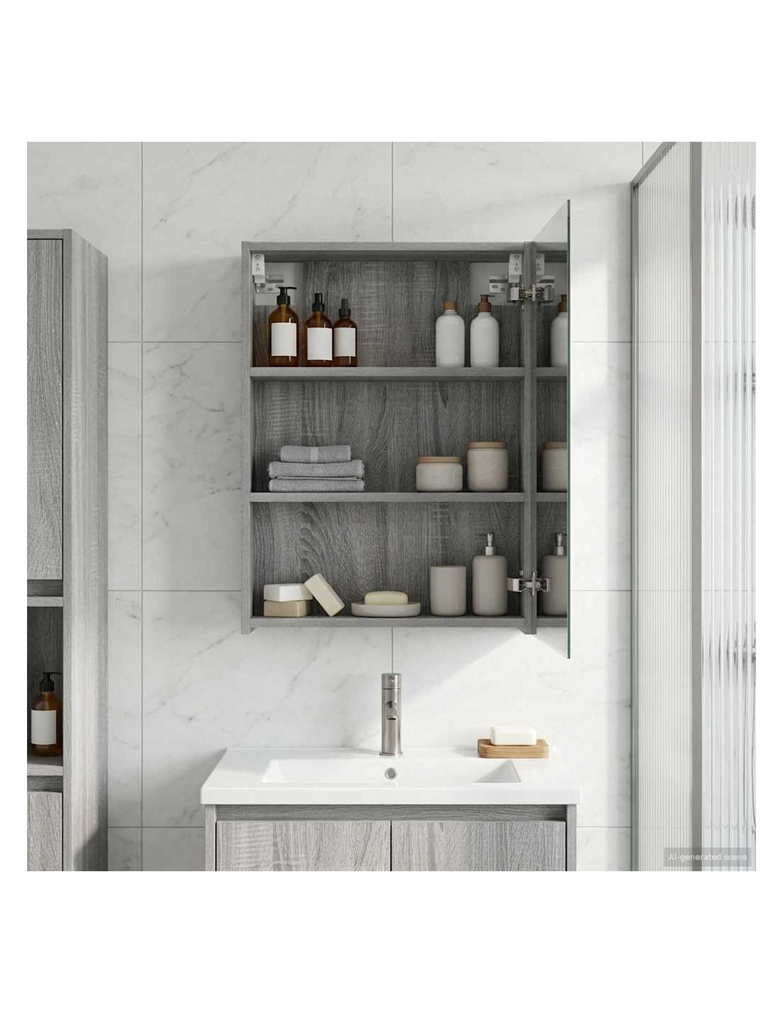 Questo armadietto a specchio moderno è la soluzione ideale per il tuo bagno. Ha un design contemporaneo, con linee pulite e minimaliste, che migliora l'arredamento. Offre abbondante spazio per riporre i tuoi essenziali e lo specchio bidirezionale è pratico e di grande impatto estetico. Costruzione in legno ingegnerizzato : Questo armadietto è realizzato in legno ingegnerizzato di alta qualità, resistente e duraturo. Grazie a questo materiale, rimarrà in ottime condizioni nel tempo. La finitura liscia conferisce un aspetto moderno, perfetto per ogni bagno. Specchio bidirezionale : Con uno specchio versatilissimo, questo armadietto ti permette di usarlo in vari modi. Da un lato è un normale specchio per le tue routine quotidiane; dall'altro, aggiunge un tocco di originalità. Questa caratteristica è utile in tante situazioni, da averne un rapido sguardo a fare chiacchiere davanti allo specchio. Design a montaggio a parete : Montando l'armadietto a parete, guadagni spazio sul pavimento, rendendolo perfetto per bagni di tutte le dimensioni. Ha un aspetto elegante e aiuta a mantenere l'ambiente ordinato, massimizzando lo spazio disponibile. È ideale per un look contemporaneo che fa colpo. Mensole in pannelli : Le mensole dell'armadietto, realizzate in legno ingegnerizzato, offrono uno spazio di stoccaggio sicuro e ben organizzato. Perfette per i tuoi prodotti da toeletta e altri essenziali, rimanendo sempre a portata di mano. Le mensole sono robuste e non cedono, mantenendo diligentemente tutto in ordine. Accesso a porta a cerniera : L'armadietto ha porte a cerniera che consentono di accedere facilmente ai tuoi oggetti. Aprono e chiudono senza fatica, assicurando una chiusura silenziosa e discreta. Questa funzionalità rende il tuo accesso facile e senza complicazioni.