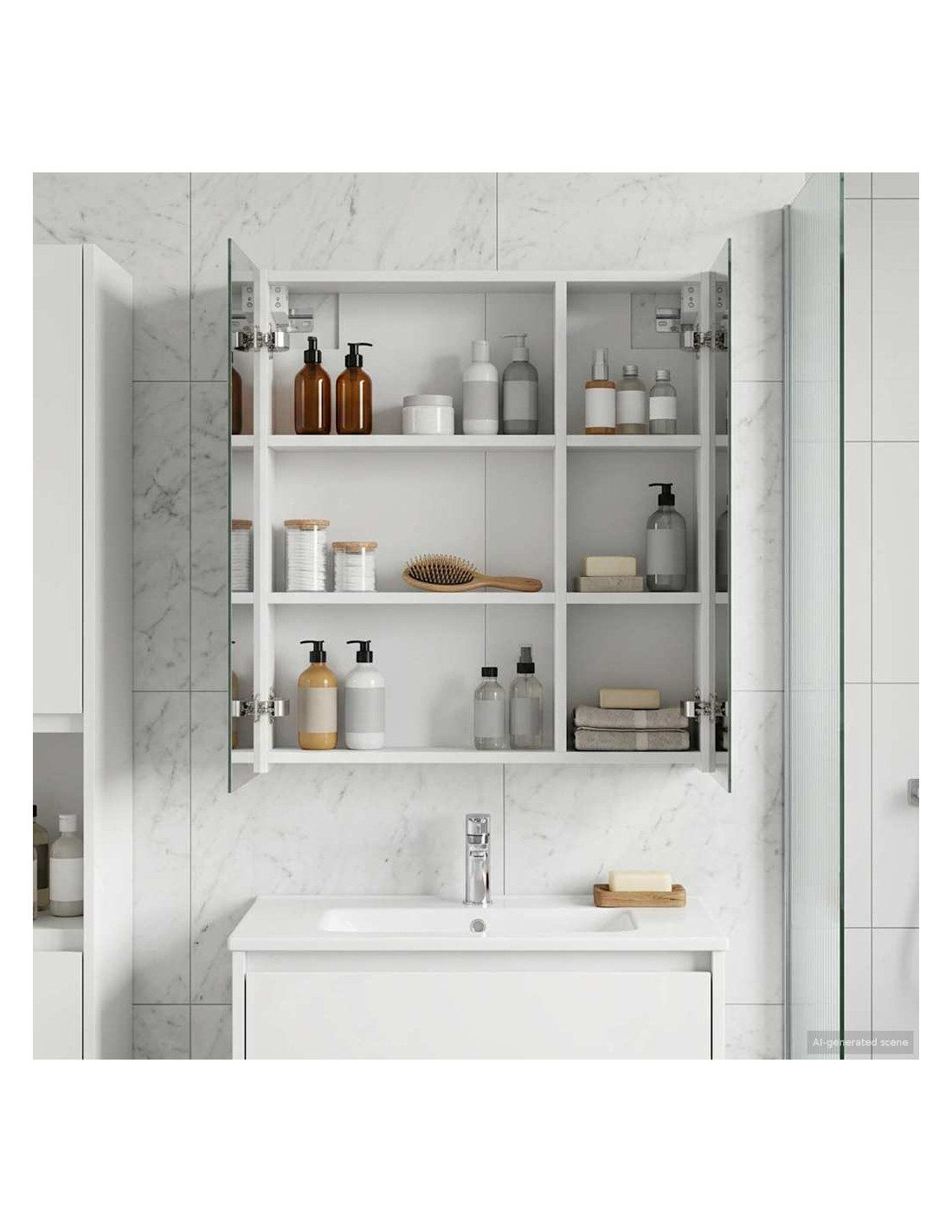 Questo armadietto a specchio da bagno moderno unisce un design elegante a funzionalità multipla, rendendolo un'aggiunta versatile per qualsiasi bagno. La forma rettangolare presenta un’estetica minimalista che segue i trend moderni, con linee pulite e un'eleganza discreta. È pensato sia come soluzione di stoccaggio che come elemento decorativo, abbinando perfettamente uno specchio bidirezionale con ripiani in truciolato per organizzare il bagno e migliorare la tua routine quotidiana. Struttura rettangolare: Il design rettangolare dell'armadietto è moderno e funzionale, offrendo tanto spazio di stoccaggio senza sovraccaricare l'ambiente. Le dimensioni sono perfette per bagni piccoli, sfruttando al massimo lo spazio verticale sulle pareti per i proprietari che vogliono efficienza mantenendo uno stile contemporaneo. Specchio bidirezionale: Con uno specchio bidirezionale, questo armadietto è sia riflettente che trasparente, permettendo di controllare il tuo look e di dare un'occhiata agli oggetti. Funzionale sia come specchio tradizionale che per verificare il contenuto dell'armadietto, assicura praticità senza compromettere lo stile. Ripiani espandibili: I ripiani in truciolato consentono di organizzare e stoccare gli articoli da bagno in modo efficace. Regolabili in altezza, offrono flessibilità per ospitare diversi articoli, garantendo che ogni oggetto trovi il suo posto con facilità. Struttura in legno ingegnerizzato: In legno ingegnerizzato di alta qualità, l'armadietto garantisce un design attraente e affidabilità. Questa scelta di materiale conferisce sia durata che resistenza all'umidità del bagno, integrandosi con altri elementi d'arredo. Installazione a parete: Progettato per il montaggio a parete, l'armadietto libera spazio a terra e offre stabilità. Questa caratteristica facilita la pulizia e ottimizza l’area del bagno, migliorando sia l'ordine che lo stile grazie a un design discreto.