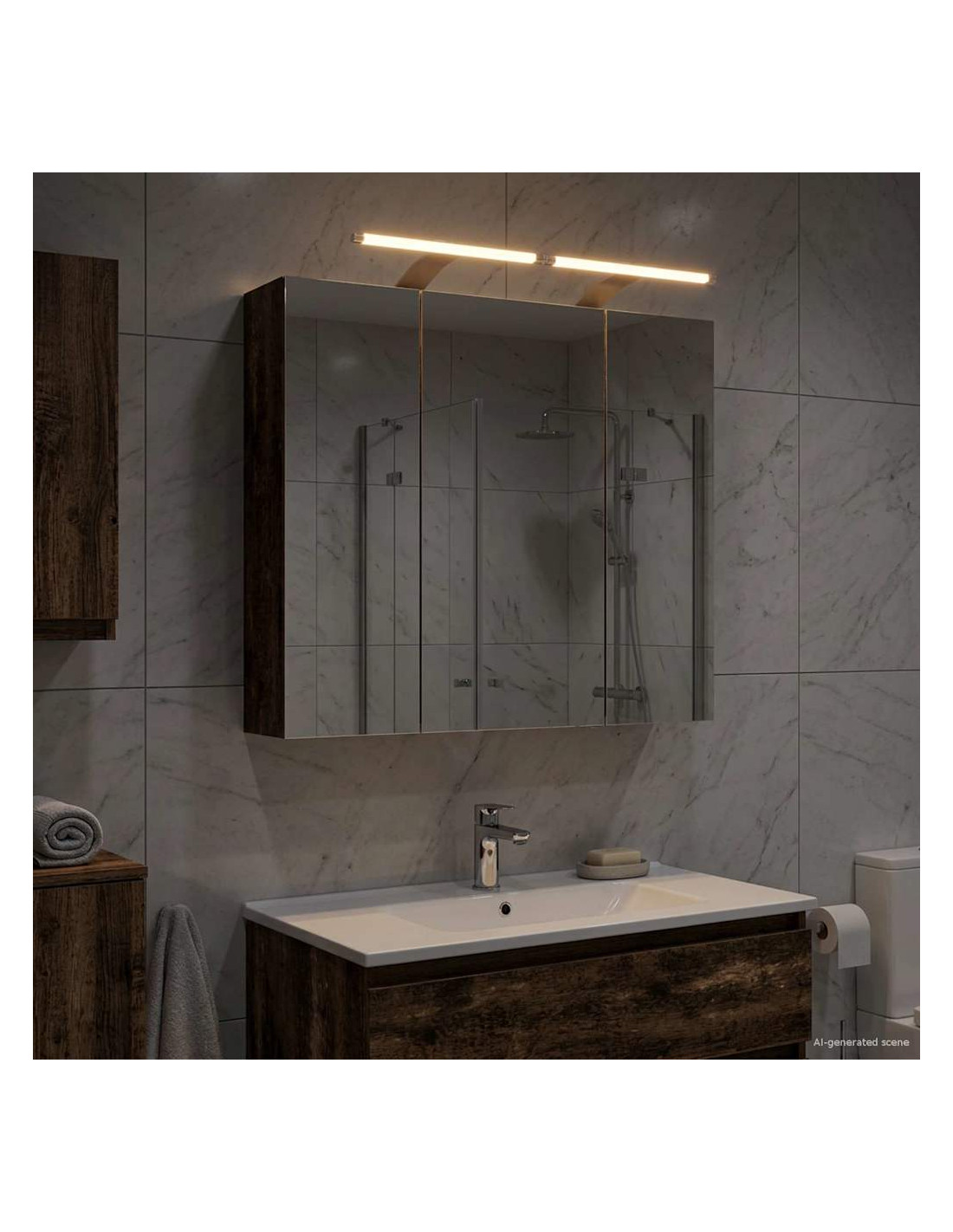 Questo armadietto moderno per specchi da bagno unisce forma e funzione con elegante facilità. Ideale per bagni moderni, ha linee pulite e uno specchio riflettente che aggiunge stile e versatilità. Perfetto per chi vuole rinnovare il bagno con un design chic e tanto spazio per riporre le cose. Materiali: Fatto in legno ingegnerizzato per un bell'aspetto e resistenza agli ambienti umidi, è una scelta top per i bagni. Dura nel tempo e riduce le sostituzioni frequenti. Componenti Inclusi: Include ripiani e porte a cerniera, perfetti per tenere in ordine gli articoli da bagno. Puoi montarci di tutto, dai prodotti di bellezza agli asciugamani, mentre le porte facilitano apertura e chiusura. Lo specchio ha anche una doppia funzione. Caratteristiche/Funzione/Design: Lo specchio bidirezionale fa il suo dovere, ideale per truccarsi o farsi la barba. Montato a muro, è perfetto per bagni piccoli, risparmiando spazio a terra e offrendo tanto spazio per riporre. Usi Consigliati: Ottimo per chi cerca stile e praticità nei bagni. Adatto sia a case private che a strutture per ospiti, migliora l'arredamento ed è pratico per tutte le necessità. Perfetto per vari stili e stagioni, dall'inverno alla primavera. Manutenzione e Cura: Pulisci con un detergente leggero per mantenere le superfici luminose e senza macchie. Pulisci regolarmente il vetro per farlo brillare. Lubrifica le cerniere di tanto in tanto per garantirne il buon funzionamento. Segui questi consigli e avrai un prodotto attraente e funzionale per molto tempo.