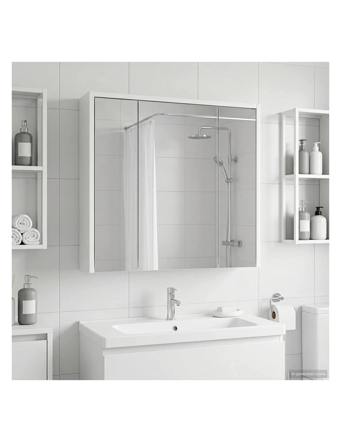 Questo mobile specchiera bagno moderno unisce stile e funzionalità con il suo design elegante, rendendolo perfetto per bagni contemporanei. È semplice e utile, si integra facilmente in qualsiasi decorazione del bagno, offrendo ottime soluzioni di stoccaggio. Con il suo specchio a doppio lato e le opzioni regolabili, si adatta alle diverse preferenze di chi lo usa. Costruzione in legno ingegnerizzato : Realizzato in legno ingegnerizzato resistente, questo mobile assicura stabilità e durata, perfetto per i bagni moderni. Non teme i cambiamenti, quindi mantiene sempre il suo fascino. Specchio bidirezionale : Questo mobile ha un innovativo specchio bidirezionale che offre sia riflessione che trasparenza, ideale per chi desidera privacy in spazi condivisi. Facilità d'uso : Con le porte a cerniera, accedi facilmente al tuo spazio. Si aprono senza problemi, così puoi prendere ciò che ti serve senza fatica. Mensole regolabili : Le mensole che puoi adattare fanno sì che tu possa tenere in ordine gli oggetti, perfette per articoli di varie dimensioni. Design montato a parete : Grazie al suo design a muro, questo mobile ti fa risparmiare spazio e offre un aspetto pulito. È particolarmente utile in bagni piccoli, per massimizzare lo spazio senza perdere in stile.