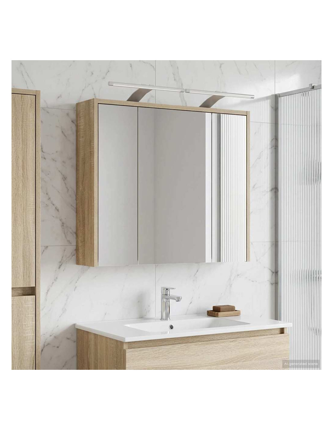 Questo mobile specchiera bagno moderno unisce stile e funzionalità con il suo design elegante, rendendolo perfetto per bagni contemporanei. È semplice e utile, si integra facilmente in qualsiasi decorazione del bagno, offrendo ottime soluzioni di stoccaggio. Con il suo specchio a doppio lato e le opzioni regolabili, si adatta alle diverse preferenze di chi lo usa. Costruzione in legno ingegnerizzato : Realizzato in legno ingegnerizzato resistente, questo mobile assicura stabilità e durata, perfetto per i bagni moderni. Non teme i cambiamenti, quindi mantiene sempre il suo fascino. Specchio bidirezionale : Questo mobile ha un innovativo specchio bidirezionale che offre sia riflessione che trasparenza, ideale per chi desidera privacy in spazi condivisi. Facilità d'uso : Con le porte a cerniera, accedi facilmente al tuo spazio. Si aprono senza problemi, così puoi prendere ciò che ti serve senza fatica. Mensole regolabili : Le mensole che puoi adattare fanno sì che tu possa tenere in ordine gli oggetti, perfette per articoli di varie dimensioni. Design montato a parete : Grazie al suo design a muro, questo mobile ti fa risparmiare spazio e offre un aspetto pulito. È particolarmente utile in bagni piccoli, per massimizzare lo spazio senza perdere in stile.