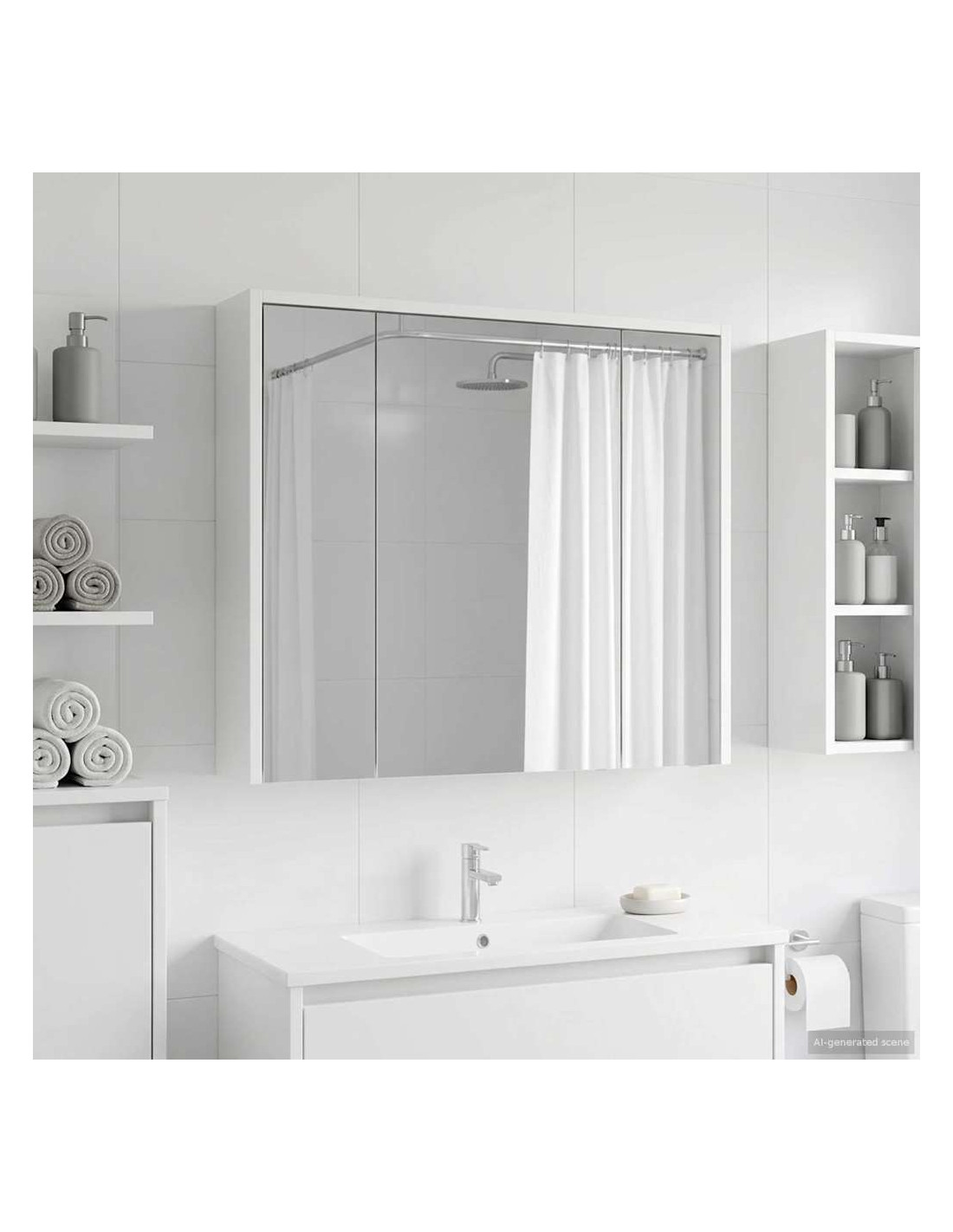 Questo mobile specchiera bagno moderno unisce stile e funzionalità con il suo design elegante, rendendolo perfetto per bagni contemporanei. È semplice e utile, si integra facilmente in qualsiasi decorazione del bagno, offrendo ottime soluzioni di stoccaggio. Con il suo specchio a doppio lato e le opzioni regolabili, si adatta alle diverse preferenze di chi lo usa. Costruzione in legno ingegnerizzato : Realizzato in legno ingegnerizzato resistente, questo mobile assicura stabilità e durata, perfetto per i bagni moderni. Non teme i cambiamenti, quindi mantiene sempre il suo fascino. Specchio bidirezionale : Questo mobile ha un innovativo specchio bidirezionale che offre sia riflessione che trasparenza, ideale per chi desidera privacy in spazi condivisi. Facilità d'uso : Con le porte a cerniera, accedi facilmente al tuo spazio. Si aprono senza problemi, così puoi prendere ciò che ti serve senza fatica. Mensole regolabili : Le mensole che puoi adattare fanno sì che tu possa tenere in ordine gli oggetti, perfette per articoli di varie dimensioni. Design montato a parete : Grazie al suo design a muro, questo mobile ti fa risparmiare spazio e offre un aspetto pulito. È particolarmente utile in bagni piccoli, per massimizzare lo spazio senza perdere in stile.