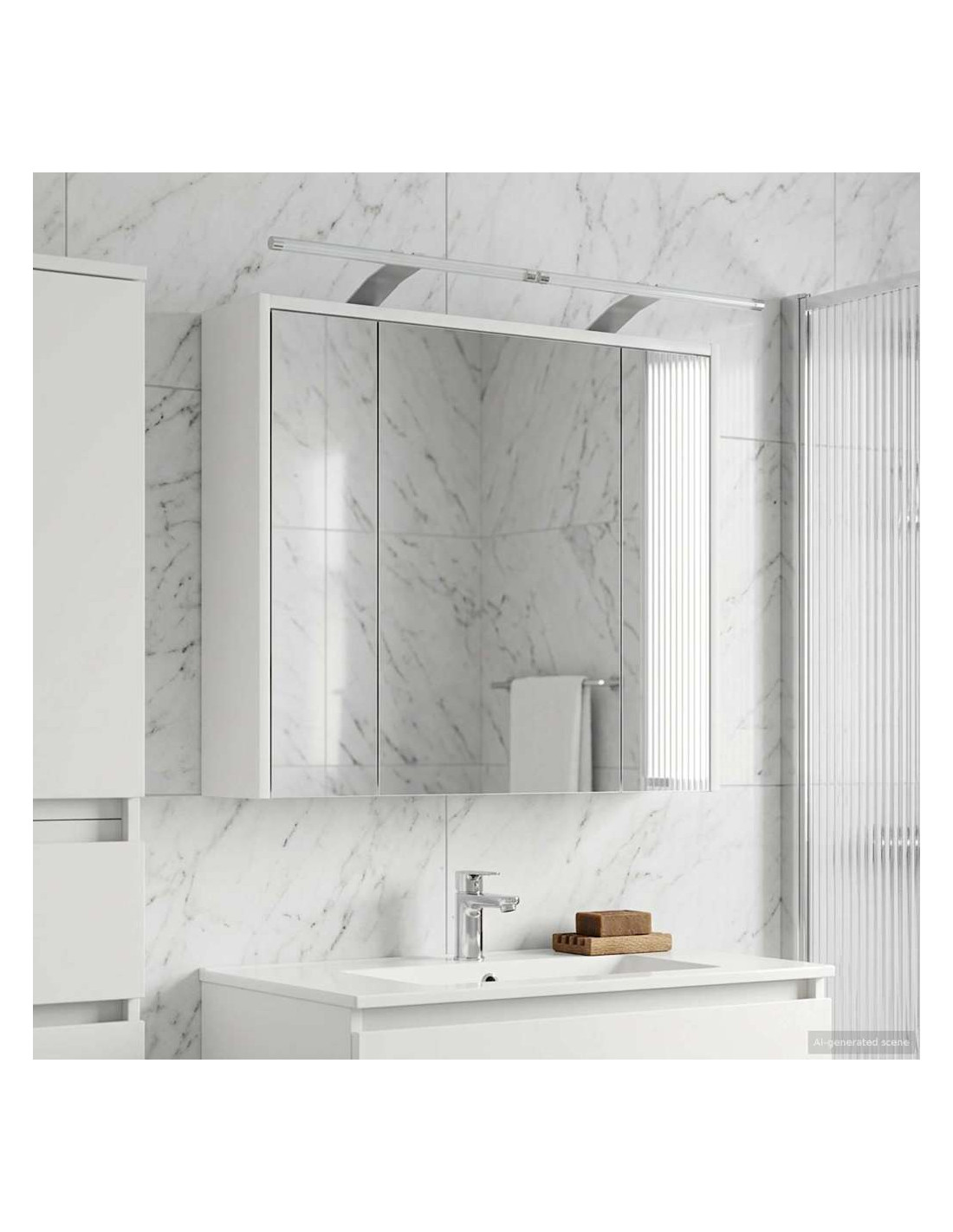 Questo mobile specchiera bagno moderno unisce stile e funzionalità con il suo design elegante, rendendolo perfetto per bagni contemporanei. È semplice e utile, si integra facilmente in qualsiasi decorazione del bagno, offrendo ottime soluzioni di stoccaggio. Con il suo specchio a doppio lato e le opzioni regolabili, si adatta alle diverse preferenze di chi lo usa. Costruzione in legno ingegnerizzato : Realizzato in legno ingegnerizzato resistente, questo mobile assicura stabilità e durata, perfetto per i bagni moderni. Non teme i cambiamenti, quindi mantiene sempre il suo fascino. Specchio bidirezionale : Questo mobile ha un innovativo specchio bidirezionale che offre sia riflessione che trasparenza, ideale per chi desidera privacy in spazi condivisi. Facilità d'uso : Con le porte a cerniera, accedi facilmente al tuo spazio. Si aprono senza problemi, così puoi prendere ciò che ti serve senza fatica. Mensole regolabili : Le mensole che puoi adattare fanno sì che tu possa tenere in ordine gli oggetti, perfette per articoli di varie dimensioni. Design montato a parete : Grazie al suo design a muro, questo mobile ti fa risparmiare spazio e offre un aspetto pulito. È particolarmente utile in bagni piccoli, per massimizzare lo spazio senza perdere in stile.