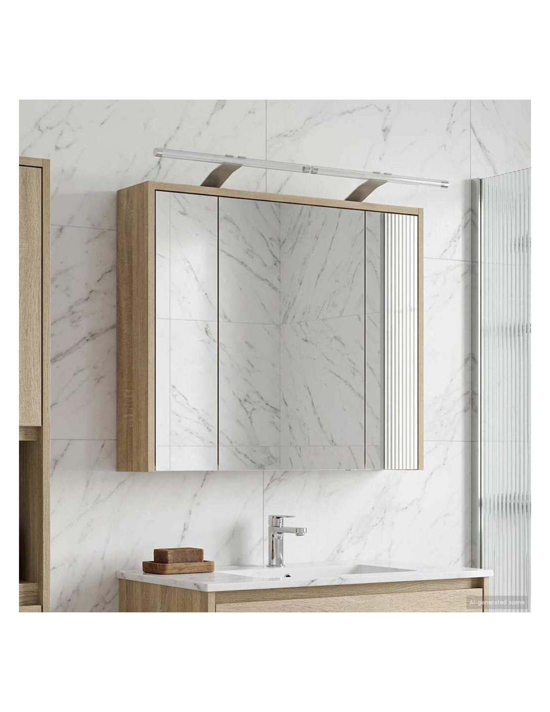 Questo mobile specchiera bagno moderno unisce stile e funzionalità con il suo design elegante, rendendolo perfetto per bagni contemporanei. È semplice e utile, si integra facilmente in qualsiasi decorazione del bagno, offrendo ottime soluzioni di stoccaggio. Con il suo specchio a doppio lato e le opzioni regolabili, si adatta alle diverse preferenze di chi lo usa. Costruzione in legno ingegnerizzato : Realizzato in legno ingegnerizzato resistente, questo mobile assicura stabilità e durata, perfetto per i bagni moderni. Non teme i cambiamenti, quindi mantiene sempre il suo fascino. Specchio bidirezionale : Questo mobile ha un innovativo specchio bidirezionale che offre sia riflessione che trasparenza, ideale per chi desidera privacy in spazi condivisi. Facilità d'uso : Con le porte a cerniera, accedi facilmente al tuo spazio. Si aprono senza problemi, così puoi prendere ciò che ti serve senza fatica. Mensole regolabili : Le mensole che puoi adattare fanno sì che tu possa tenere in ordine gli oggetti, perfette per articoli di varie dimensioni. Design montato a parete : Grazie al suo design a muro, questo mobile ti fa risparmiare spazio e offre un aspetto pulito. È particolarmente utile in bagni piccoli, per massimizzare lo spazio senza perdere in stile.