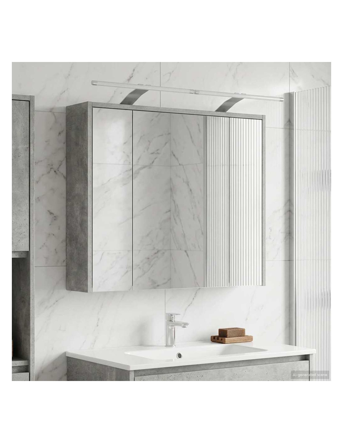 Questo mobile specchiera bagno moderno unisce stile e funzionalità con il suo design elegante, rendendolo perfetto per bagni contemporanei. È semplice e utile, si integra facilmente in qualsiasi decorazione del bagno, offrendo ottime soluzioni di stoccaggio. Con il suo specchio a doppio lato e le opzioni regolabili, si adatta alle diverse preferenze di chi lo usa. Costruzione in legno ingegnerizzato : Realizzato in legno ingegnerizzato resistente, questo mobile assicura stabilità e durata, perfetto per i bagni moderni. Non teme i cambiamenti, quindi mantiene sempre il suo fascino. Specchio bidirezionale : Questo mobile ha un innovativo specchio bidirezionale che offre sia riflessione che trasparenza, ideale per chi desidera privacy in spazi condivisi. Facilità d'uso : Con le porte a cerniera, accedi facilmente al tuo spazio. Si aprono senza problemi, così puoi prendere ciò che ti serve senza fatica. Mensole regolabili : Le mensole che puoi adattare fanno sì che tu possa tenere in ordine gli oggetti, perfette per articoli di varie dimensioni. Design montato a parete : Grazie al suo design a muro, questo mobile ti fa risparmiare spazio e offre un aspetto pulito. È particolarmente utile in bagni piccoli, per massimizzare lo spazio senza perdere in stile.