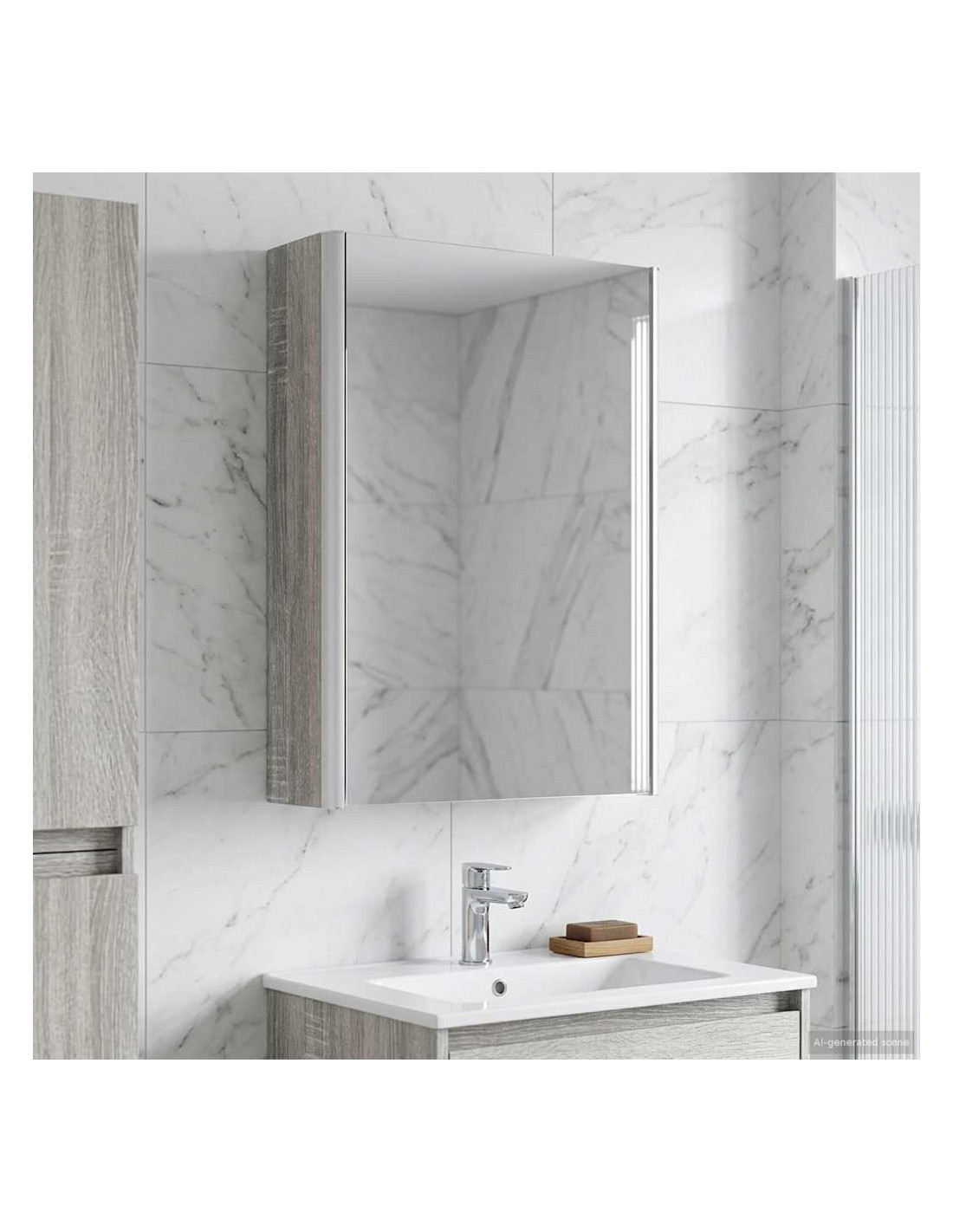Questo armadietto a specchio per il bagno è una combinazione di design moderno e funzionalità pratica, essenziale per ogni bagno contemporaneo. La forma minimale e le linee chiare danno un tocco elegante, pur offrendo spazio per riporre gli oggetti di uso quotidiano. Include luci discrete che migliorano sia la visibilità che l'atmosfera, unendo utilità e stile in modo efficace. Costruzione in legno ingegnerizzato Questo armadietto è realizzato in legno ingegnerizzato resistente, che assicura durata e un aspetto raffinato. Questo materiale resiste bene all'umidità e alla deformazione, ideale per i bagni. Scaffalature versatili Gli scaffali in legno ingegnerizzato offrono soluzioni funzionali per vari articoli da toeletta. Grazie ai suoi ripiani regolabili, si adatta facilmente a oggetti di diverse dimensioni. Specchio doppio Con il suo specchio bidirezionale, combina riflesso e trasparenza. È ideale sia per le routine di bellezza sia per una maggiore privacy. Illuminazione LED regolabile Montato con luci LED a basso consumo, l'armadietto offre un'illuminazione personalizzata per ogni attività. Illumina bene gli spazi e si adatta facilmente all'arredamento. Installazione a parete sicura Progettato per un'installazione a parete, ottimizza lo spazio senza sacrificare la capacità di stoccaggio. Il sistema di montaggio è sicuro e insieme alle porte a cerniera assicura un facile accesso.