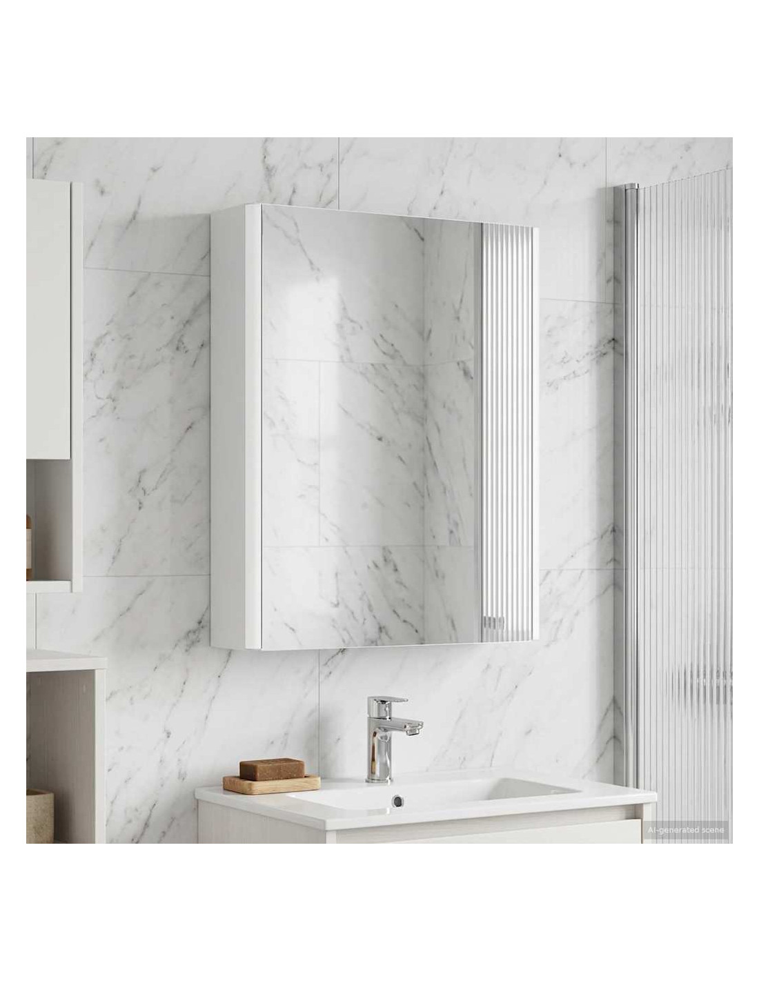 Questo armadietto a specchio per il bagno è una combinazione di design moderno e funzionalità pratica, essenziale per ogni bagno contemporaneo. La forma minimale e le linee chiare danno un tocco elegante, pur offrendo spazio per riporre gli oggetti di uso quotidiano. Include luci discrete che migliorano sia la visibilità che l'atmosfera, unendo utilità e stile in modo efficace. Costruzione in legno ingegnerizzato Questo armadietto è realizzato in legno ingegnerizzato resistente, che assicura durata e un aspetto raffinato. Questo materiale resiste bene all'umidità e alla deformazione, ideale per i bagni. Scaffalature versatili Gli scaffali in legno ingegnerizzato offrono soluzioni funzionali per vari articoli da toeletta. Grazie ai suoi ripiani regolabili, si adatta facilmente a oggetti di diverse dimensioni. Specchio doppio Con il suo specchio bidirezionale, combina riflesso e trasparenza. È ideale sia per le routine di bellezza sia per una maggiore privacy. Illuminazione LED regolabile Montato con luci LED a basso consumo, l'armadietto offre un'illuminazione personalizzata per ogni attività. Illumina bene gli spazi e si adatta facilmente all'arredamento. Installazione a parete sicura Progettato per un'installazione a parete, ottimizza lo spazio senza sacrificare la capacità di stoccaggio. Il sistema di montaggio è sicuro e insieme alle porte a cerniera assicura un facile accesso.