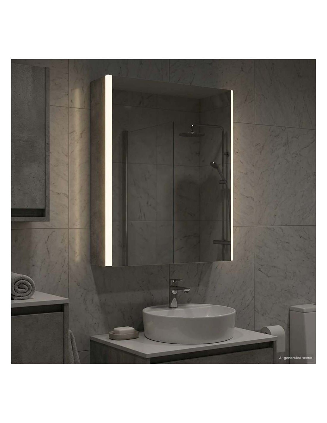 Questo armadietto a specchio per il bagno è una combinazione di design moderno e funzionalità pratica, essenziale per ogni bagno contemporaneo. La forma minimale e le linee chiare danno un tocco elegante, pur offrendo spazio per riporre gli oggetti di uso quotidiano. Include luci discrete che migliorano sia la visibilità che l'atmosfera, unendo utilità e stile in modo efficace. Costruzione in legno ingegnerizzato Questo armadietto è realizzato in legno ingegnerizzato resistente, che assicura durata e un aspetto raffinato. Questo materiale resiste bene all'umidità e alla deformazione, ideale per i bagni. Scaffalature versatili Gli scaffali in legno ingegnerizzato offrono soluzioni funzionali per vari articoli da toeletta. Grazie ai suoi ripiani regolabili, si adatta facilmente a oggetti di diverse dimensioni. Specchio doppio Con il suo specchio bidirezionale, combina riflesso e trasparenza. È ideale sia per le routine di bellezza sia per una maggiore privacy. Illuminazione LED regolabile Montato con luci LED a basso consumo, l'armadietto offre un'illuminazione personalizzata per ogni attività. Illumina bene gli spazi e si adatta facilmente all'arredamento. Installazione a parete sicura Progettato per un'installazione a parete, ottimizza lo spazio senza sacrificare la capacità di stoccaggio. Il sistema di montaggio è sicuro e insieme alle porte a cerniera assicura un facile accesso.