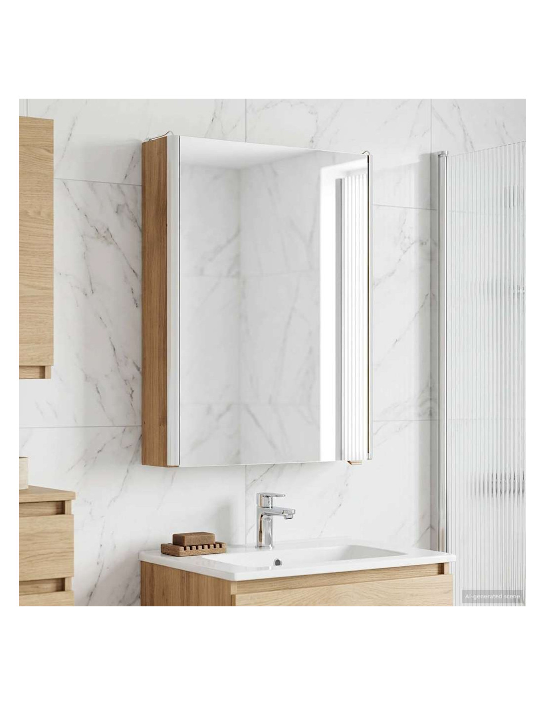 Questo armadietto a specchio per il bagno è una combinazione di design moderno e funzionalità pratica, essenziale per ogni bagno contemporaneo. La forma minimale e le linee chiare danno un tocco elegante, pur offrendo spazio per riporre gli oggetti di uso quotidiano. Include luci discrete che migliorano sia la visibilità che l'atmosfera, unendo utilità e stile in modo efficace. Costruzione in legno ingegnerizzato Questo armadietto è realizzato in legno ingegnerizzato resistente, che assicura durata e un aspetto raffinato. Questo materiale resiste bene all'umidità e alla deformazione, ideale per i bagni. Scaffalature versatili Gli scaffali in legno ingegnerizzato offrono soluzioni funzionali per vari articoli da toeletta. Grazie ai suoi ripiani regolabili, si adatta facilmente a oggetti di diverse dimensioni. Specchio doppio Con il suo specchio bidirezionale, combina riflesso e trasparenza. È ideale sia per le routine di bellezza sia per una maggiore privacy. Illuminazione LED regolabile Montato con luci LED a basso consumo, l'armadietto offre un'illuminazione personalizzata per ogni attività. Illumina bene gli spazi e si adatta facilmente all'arredamento. Installazione a parete sicura Progettato per un'installazione a parete, ottimizza lo spazio senza sacrificare la capacità di stoccaggio. Il sistema di montaggio è sicuro e insieme alle porte a cerniera assicura un facile accesso.