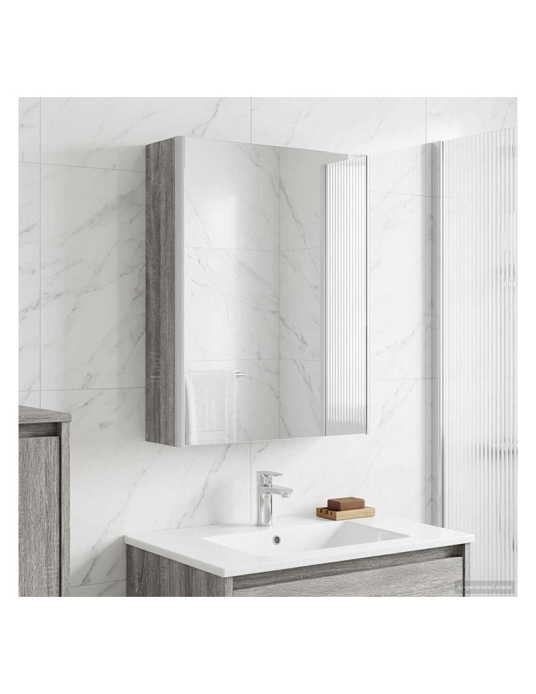 Questo armadietto a specchio per il bagno è una combinazione di design moderno e funzionalità pratica, essenziale per ogni bagno contemporaneo. La forma minimale e le linee chiare danno un tocco elegante, pur offrendo spazio per riporre gli oggetti di uso quotidiano. Include luci discrete che migliorano sia la visibilità che l'atmosfera, unendo utilità e stile in modo efficace. Costruzione in legno ingegnerizzato Questo armadietto è realizzato in legno ingegnerizzato resistente, che assicura durata e un aspetto raffinato. Questo materiale resiste bene all'umidità e alla deformazione, ideale per i bagni. Scaffalature versatili Gli scaffali in legno ingegnerizzato offrono soluzioni funzionali per vari articoli da toeletta. Grazie ai suoi ripiani regolabili, si adatta facilmente a oggetti di diverse dimensioni. Specchio doppio Con il suo specchio bidirezionale, combina riflesso e trasparenza. È ideale sia per le routine di bellezza sia per una maggiore privacy. Illuminazione LED regolabile Montato con luci LED a basso consumo, l'armadietto offre un'illuminazione personalizzata per ogni attività. Illumina bene gli spazi e si adatta facilmente all'arredamento. Installazione a parete sicura Progettato per un'installazione a parete, ottimizza lo spazio senza sacrificare la capacità di stoccaggio. Il sistema di montaggio è sicuro e insieme alle porte a cerniera assicura un facile accesso.