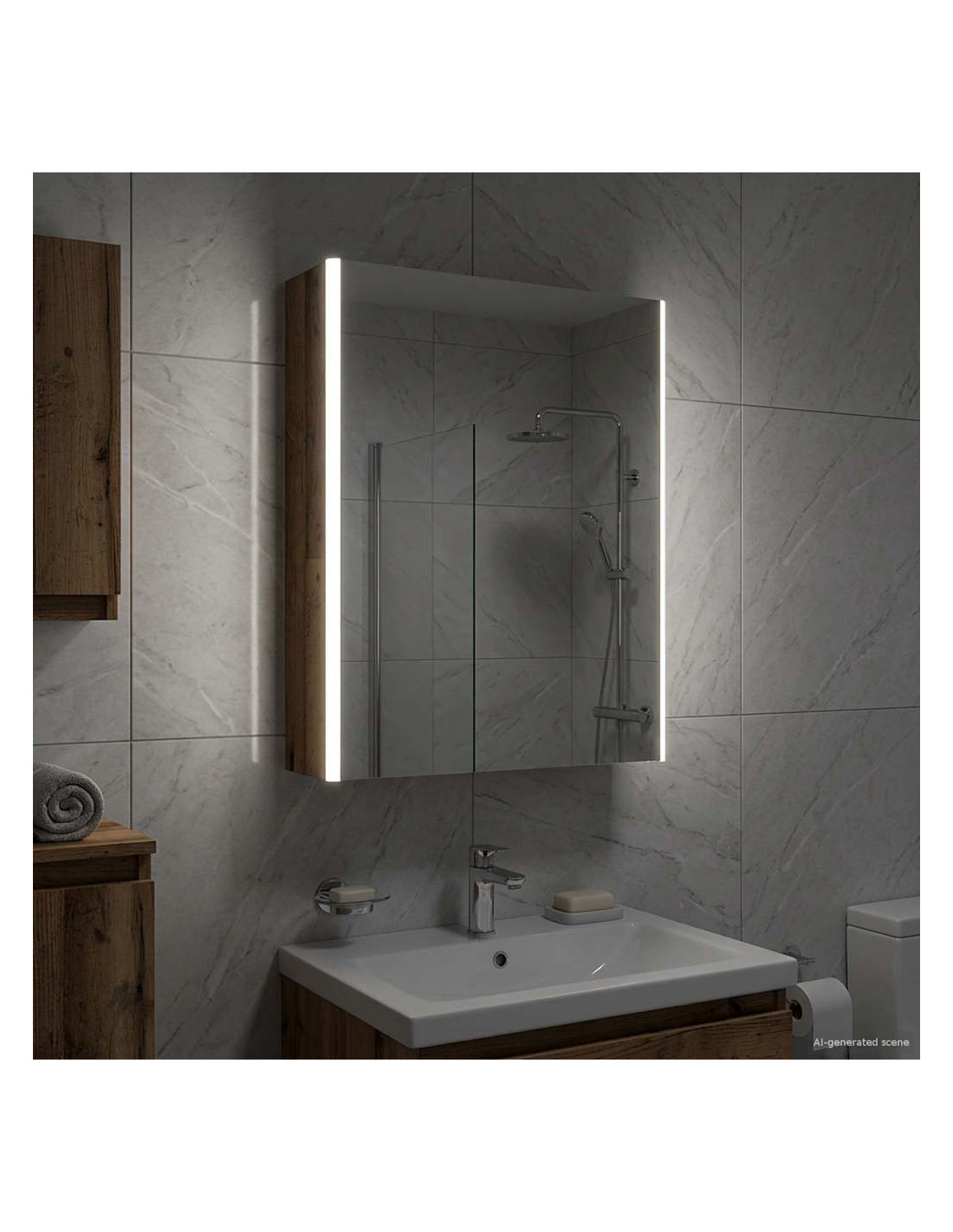 Questo armadietto a specchio per il bagno è una combinazione di design moderno e funzionalità pratica, essenziale per ogni bagno contemporaneo. La forma minimale e le linee chiare danno un tocco elegante, pur offrendo spazio per riporre gli oggetti di uso quotidiano. Include luci discrete che migliorano sia la visibilità che l'atmosfera, unendo utilità e stile in modo efficace. Costruzione in legno ingegnerizzato Questo armadietto è realizzato in legno ingegnerizzato resistente, che assicura durata e un aspetto raffinato. Questo materiale resiste bene all'umidità e alla deformazione, ideale per i bagni. Scaffalature versatili Gli scaffali in legno ingegnerizzato offrono soluzioni funzionali per vari articoli da toeletta. Grazie ai suoi ripiani regolabili, si adatta facilmente a oggetti di diverse dimensioni. Specchio doppio Con il suo specchio bidirezionale, combina riflesso e trasparenza. È ideale sia per le routine di bellezza sia per una maggiore privacy. Illuminazione LED regolabile Montato con luci LED a basso consumo, l'armadietto offre un'illuminazione personalizzata per ogni attività. Illumina bene gli spazi e si adatta facilmente all'arredamento. Installazione a parete sicura Progettato per un'installazione a parete, ottimizza lo spazio senza sacrificare la capacità di stoccaggio. Il sistema di montaggio è sicuro e insieme alle porte a cerniera assicura un facile accesso.