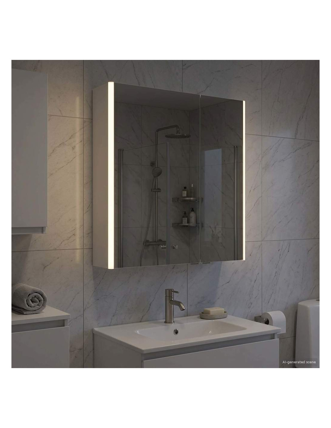 Questo armadietto a specchio per il bagno è una combinazione di design moderno e funzionalità pratica, essenziale per ogni bagno contemporaneo. La forma minimale e le linee chiare danno un tocco elegante, pur offrendo spazio per riporre gli oggetti di uso quotidiano. Include luci discrete che migliorano sia la visibilità che l'atmosfera, unendo utilità e stile in modo efficace. Costruzione in legno ingegnerizzato Questo armadietto è realizzato in legno ingegnerizzato resistente, che assicura durata e un aspetto raffinato. Questo materiale resiste bene all'umidità e alla deformazione, ideale per i bagni. Scaffalature versatili Gli scaffali in legno ingegnerizzato offrono soluzioni funzionali per vari articoli da toeletta. Grazie ai suoi ripiani regolabili, si adatta facilmente a oggetti di diverse dimensioni. Specchio doppio Con il suo specchio bidirezionale, combina riflesso e trasparenza. È ideale sia per le routine di bellezza sia per una maggiore privacy. Illuminazione LED regolabile Montato con luci LED a basso consumo, l'armadietto offre un'illuminazione personalizzata per ogni attività. Illumina bene gli spazi e si adatta facilmente all'arredamento. Installazione a parete sicura Progettato per un'installazione a parete, ottimizza lo spazio senza sacrificare la capacità di stoccaggio. Il sistema di montaggio è sicuro e insieme alle porte a cerniera assicura un facile accesso.