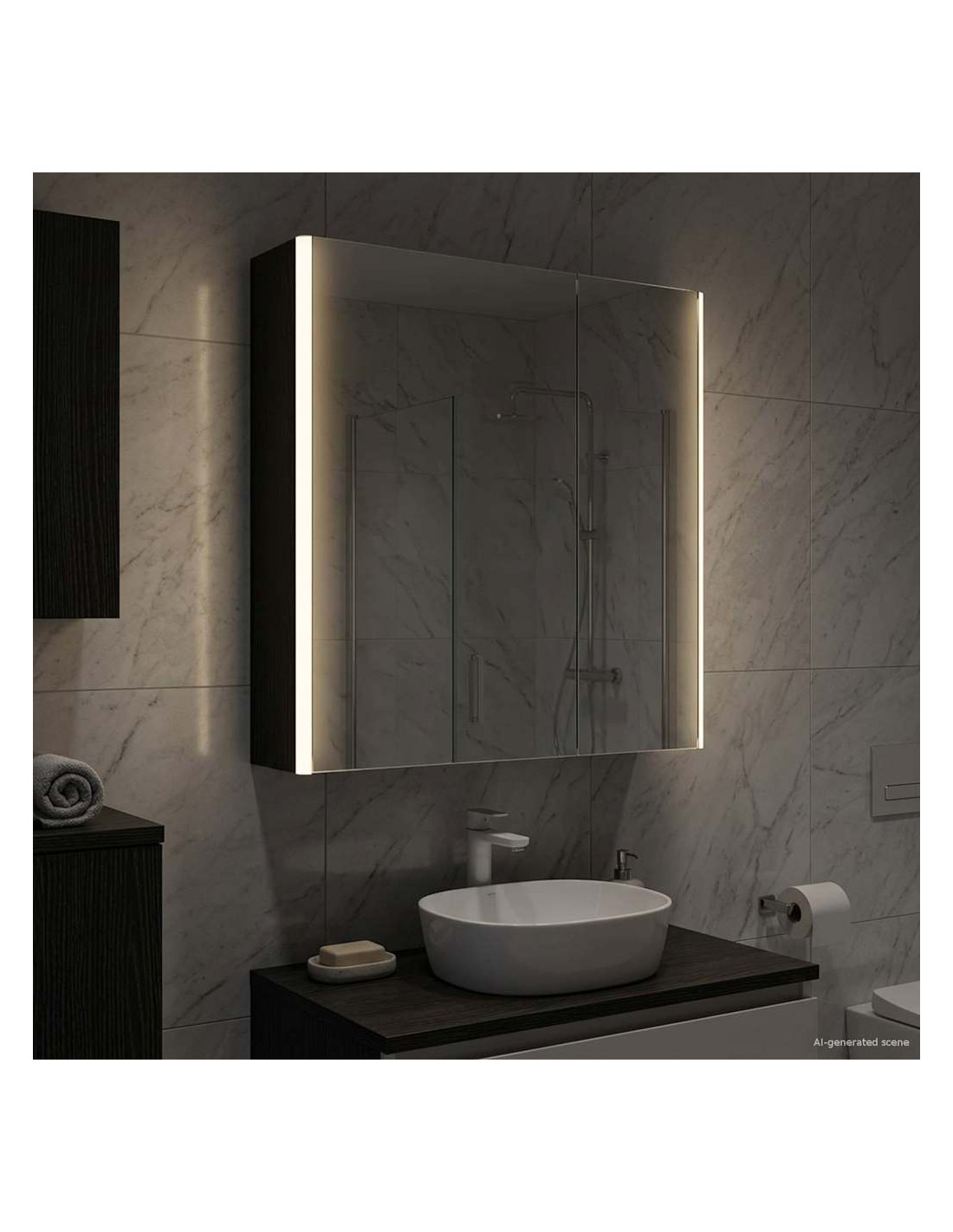 Questo armadietto a specchio per il bagno è una combinazione di design moderno e funzionalità pratica, essenziale per ogni bagno contemporaneo. La forma minimale e le linee chiare danno un tocco elegante, pur offrendo spazio per riporre gli oggetti di uso quotidiano. Include luci discrete che migliorano sia la visibilità che l'atmosfera, unendo utilità e stile in modo efficace. Costruzione in legno ingegnerizzato Questo armadietto è realizzato in legno ingegnerizzato resistente, che assicura durata e un aspetto raffinato. Questo materiale resiste bene all'umidità e alla deformazione, ideale per i bagni. Scaffalature versatili Gli scaffali in legno ingegnerizzato offrono soluzioni funzionali per vari articoli da toeletta. Grazie ai suoi ripiani regolabili, si adatta facilmente a oggetti di diverse dimensioni. Specchio doppio Con il suo specchio bidirezionale, combina riflesso e trasparenza. È ideale sia per le routine di bellezza sia per una maggiore privacy. Illuminazione LED regolabile Montato con luci LED a basso consumo, l'armadietto offre un'illuminazione personalizzata per ogni attività. Illumina bene gli spazi e si adatta facilmente all'arredamento. Installazione a parete sicura Progettato per un'installazione a parete, ottimizza lo spazio senza sacrificare la capacità di stoccaggio. Il sistema di montaggio è sicuro e insieme alle porte a cerniera assicura un facile accesso.