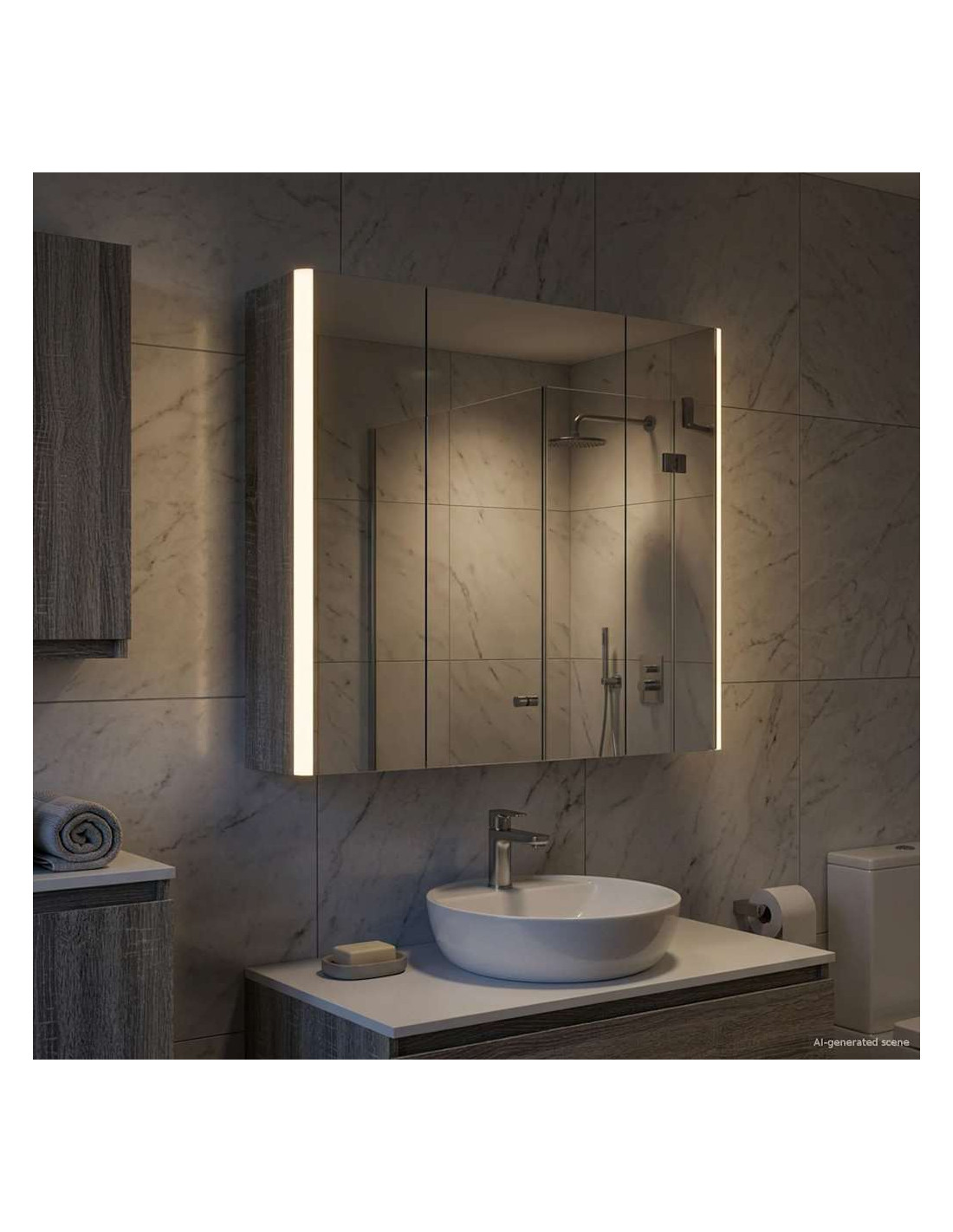 Questo armadietto a specchio per il bagno è una combinazione di design moderno e funzionalità pratica, essenziale per ogni bagno contemporaneo. La forma minimale e le linee chiare danno un tocco elegante, pur offrendo spazio per riporre gli oggetti di uso quotidiano. Include luci discrete che migliorano sia la visibilità che l'atmosfera, unendo utilità e stile in modo efficace. Costruzione in legno ingegnerizzato Questo armadietto è realizzato in legno ingegnerizzato resistente, che assicura durata e un aspetto raffinato. Questo materiale resiste bene all'umidità e alla deformazione, ideale per i bagni. Scaffalature versatili Gli scaffali in legno ingegnerizzato offrono soluzioni funzionali per vari articoli da toeletta. Grazie ai suoi ripiani regolabili, si adatta facilmente a oggetti di diverse dimensioni. Specchio doppio Con il suo specchio bidirezionale, combina riflesso e trasparenza. È ideale sia per le routine di bellezza sia per una maggiore privacy. Illuminazione LED regolabile Montato con luci LED a basso consumo, l'armadietto offre un'illuminazione personalizzata per ogni attività. Illumina bene gli spazi e si adatta facilmente all'arredamento. Installazione a parete sicura Progettato per un'installazione a parete, ottimizza lo spazio senza sacrificare la capacità di stoccaggio. Il sistema di montaggio è sicuro e insieme alle porte a cerniera assicura un facile accesso.