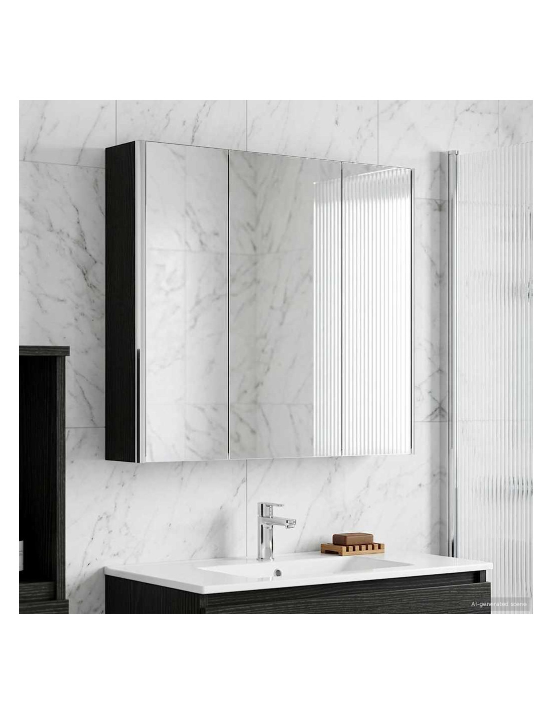 Questo armadietto a specchio per il bagno è una combinazione di design moderno e funzionalità pratica, essenziale per ogni bagno contemporaneo. La forma minimale e le linee chiare danno un tocco elegante, pur offrendo spazio per riporre gli oggetti di uso quotidiano. Include luci discrete che migliorano sia la visibilità che l'atmosfera, unendo utilità e stile in modo efficace. Costruzione in legno ingegnerizzato Questo armadietto è realizzato in legno ingegnerizzato resistente, che assicura durata e un aspetto raffinato. Questo materiale resiste bene all'umidità e alla deformazione, ideale per i bagni. Scaffalature versatili Gli scaffali in legno ingegnerizzato offrono soluzioni funzionali per vari articoli da toeletta. Grazie ai suoi ripiani regolabili, si adatta facilmente a oggetti di diverse dimensioni. Specchio doppio Con il suo specchio bidirezionale, combina riflesso e trasparenza. È ideale sia per le routine di bellezza sia per una maggiore privacy. Illuminazione LED regolabile Montato con luci LED a basso consumo, l'armadietto offre un'illuminazione personalizzata per ogni attività. Illumina bene gli spazi e si adatta facilmente all'arredamento. Installazione a parete sicura Progettato per un'installazione a parete, ottimizza lo spazio senza sacrificare la capacità di stoccaggio. Il sistema di montaggio è sicuro e insieme alle porte a cerniera assicura un facile accesso.