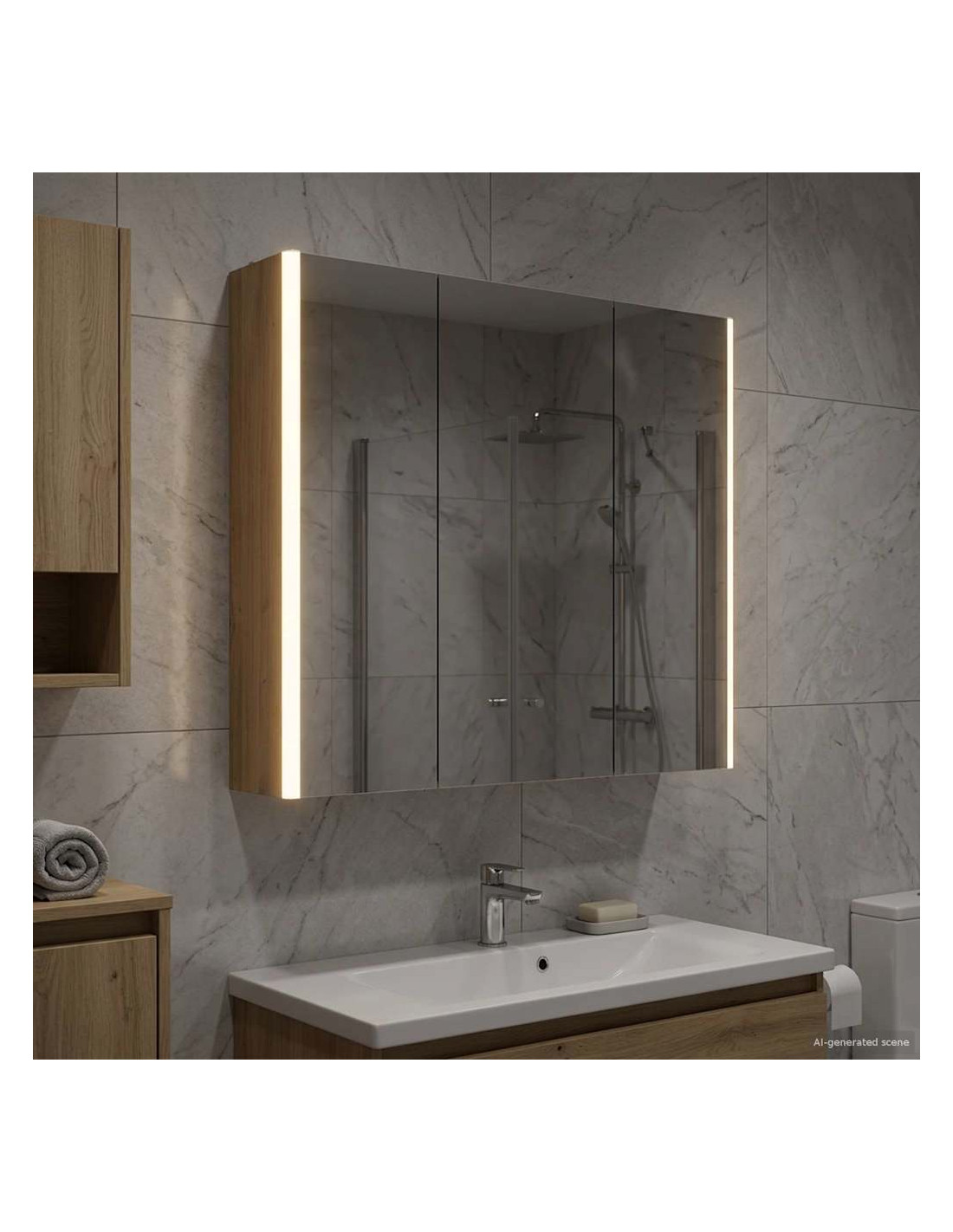 Questo armadietto a specchio per il bagno è una combinazione di design moderno e funzionalità pratica, essenziale per ogni bagno contemporaneo. La forma minimale e le linee chiare danno un tocco elegante, pur offrendo spazio per riporre gli oggetti di uso quotidiano. Include luci discrete che migliorano sia la visibilità che l'atmosfera, unendo utilità e stile in modo efficace. Costruzione in legno ingegnerizzato Questo armadietto è realizzato in legno ingegnerizzato resistente, che assicura durata e un aspetto raffinato. Questo materiale resiste bene all'umidità e alla deformazione, ideale per i bagni. Scaffalature versatili Gli scaffali in legno ingegnerizzato offrono soluzioni funzionali per vari articoli da toeletta. Grazie ai suoi ripiani regolabili, si adatta facilmente a oggetti di diverse dimensioni. Specchio doppio Con il suo specchio bidirezionale, combina riflesso e trasparenza. È ideale sia per le routine di bellezza sia per una maggiore privacy. Illuminazione LED regolabile Montato con luci LED a basso consumo, l'armadietto offre un'illuminazione personalizzata per ogni attività. Illumina bene gli spazi e si adatta facilmente all'arredamento. Installazione a parete sicura Progettato per un'installazione a parete, ottimizza lo spazio senza sacrificare la capacità di stoccaggio. Il sistema di montaggio è sicuro e insieme alle porte a cerniera assicura un facile accesso.