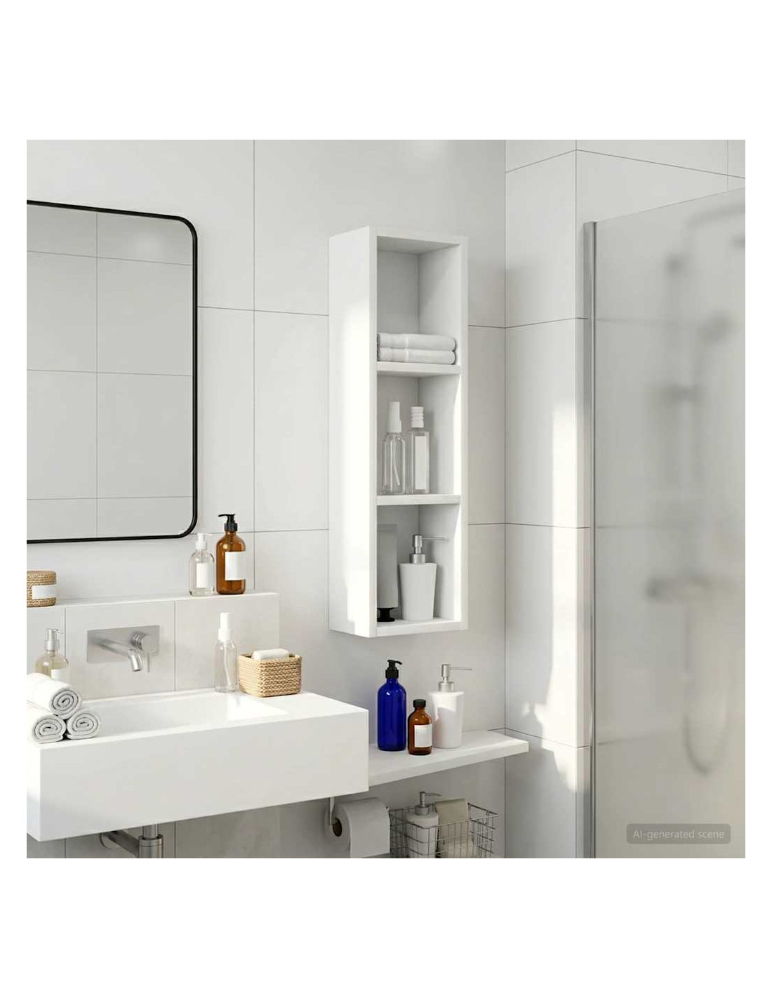 Questo mobiletto bagno moderno è la soluzione ideale per chi cerca uno stoccaggio elegante e minimalista. Il design a muro è perfetto per bagni piccoli dove lo spazio è limitato, rendendolo un'ottima scelta per case moderne. Le linee pulite e la forma rettangolare migliorano ogni stile d'arredamento, fungendo da elemento pratico e bello da vedere. Materiali: Realizzato in legno ingegnerizzato, è robusto e resistente all'umidità, mantenendo un aspetto estetico gradevole e moderno. Componenti inclusi: Include ripiani pratici, perfetti per riporre vari articoli da bagno con facilità, tenendoli a portata di mano. Caratteristiche / Funzione / Design: Questo mobiletto a muro è studiato per ottimizzare lo spazio, aggiungendo ampie possibilità di stoccaggio senza ingombrare il pavimento. Usi consigliati: Ideale per bagni che necessitano di maggiore spazio di stoccaggio, perfetto per asciugamani, articoli da toeletta e altre necessità. Si inserisce bene in spazi compatti. Manutenzione: Pulisci le superfici con un panno umido e usa prodotti delicati per preservarne la qualità e il design nel tempo.