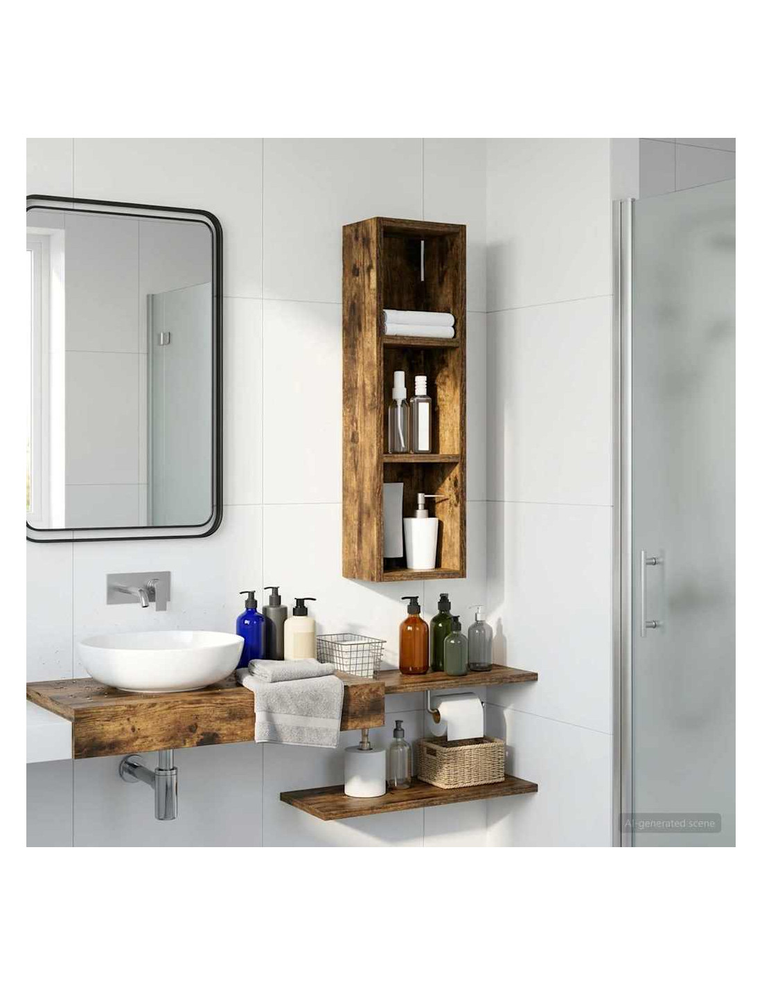 Questo mobiletto bagno moderno è la soluzione ideale per chi cerca uno stoccaggio elegante e minimalista. Il design a muro è perfetto per bagni piccoli dove lo spazio è limitato, rendendolo un'ottima scelta per case moderne. Le linee pulite e la forma rettangolare migliorano ogni stile d'arredamento, fungendo da elemento pratico e bello da vedere. Materiali: Realizzato in legno ingegnerizzato, è robusto e resistente all'umidità, mantenendo un aspetto estetico gradevole e moderno. Componenti inclusi: Include ripiani pratici, perfetti per riporre vari articoli da bagno con facilità, tenendoli a portata di mano. Caratteristiche / Funzione / Design: Questo mobiletto a muro è studiato per ottimizzare lo spazio, aggiungendo ampie possibilità di stoccaggio senza ingombrare il pavimento. Usi consigliati: Ideale per bagni che necessitano di maggiore spazio di stoccaggio, perfetto per asciugamani, articoli da toeletta e altre necessità. Si inserisce bene in spazi compatti. Manutenzione: Pulisci le superfici con un panno umido e usa prodotti delicati per preservarne la qualità e il design nel tempo.