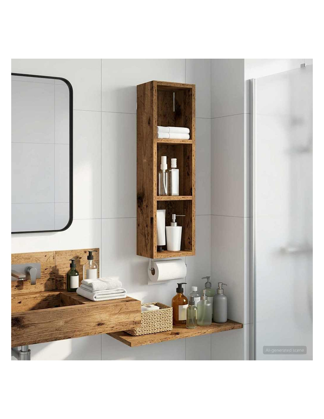 Questo mobiletto bagno moderno è la soluzione ideale per chi cerca uno stoccaggio elegante e minimalista. Il design a muro è perfetto per bagni piccoli dove lo spazio è limitato, rendendolo un'ottima scelta per case moderne. Le linee pulite e la forma rettangolare migliorano ogni stile d'arredamento, fungendo da elemento pratico e bello da vedere. Materiali: Realizzato in legno ingegnerizzato, è robusto e resistente all'umidità, mantenendo un aspetto estetico gradevole e moderno. Componenti inclusi: Include ripiani pratici, perfetti per riporre vari articoli da bagno con facilità, tenendoli a portata di mano. Caratteristiche / Funzione / Design: Questo mobiletto a muro è studiato per ottimizzare lo spazio, aggiungendo ampie possibilità di stoccaggio senza ingombrare il pavimento. Usi consigliati: Ideale per bagni che necessitano di maggiore spazio di stoccaggio, perfetto per asciugamani, articoli da toeletta e altre necessità. Si inserisce bene in spazi compatti. Manutenzione: Pulisci le superfici con un panno umido e usa prodotti delicati per preservarne la qualità e il design nel tempo.