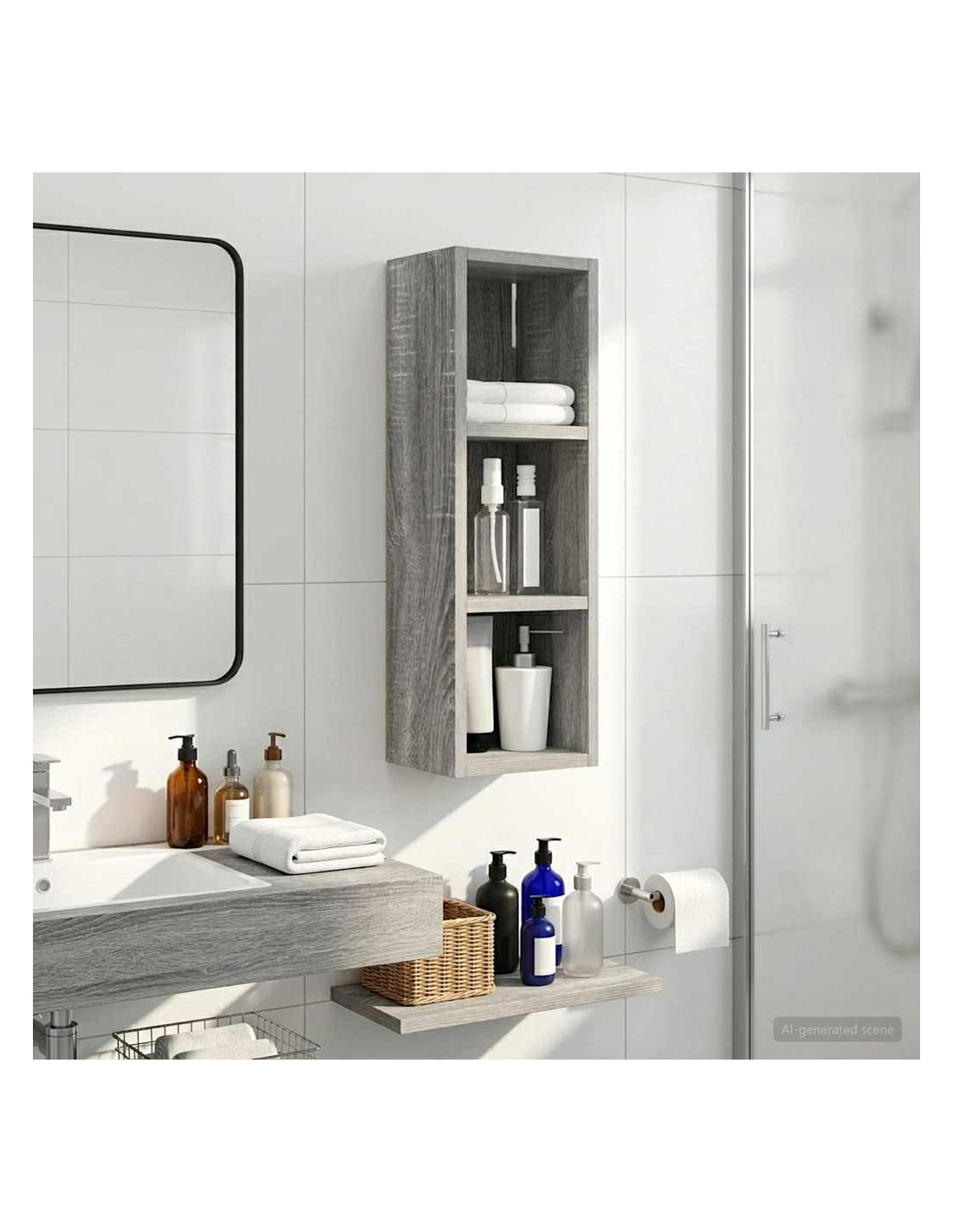 Questo mobiletto bagno moderno è la soluzione ideale per chi cerca uno stoccaggio elegante e minimalista. Il design a muro è perfetto per bagni piccoli dove lo spazio è limitato, rendendolo un'ottima scelta per case moderne. Le linee pulite e la forma rettangolare migliorano ogni stile d'arredamento, fungendo da elemento pratico e bello da vedere. Materiali: Realizzato in legno ingegnerizzato, è robusto e resistente all'umidità, mantenendo un aspetto estetico gradevole e moderno. Componenti inclusi: Include ripiani pratici, perfetti per riporre vari articoli da bagno con facilità, tenendoli a portata di mano. Caratteristiche / Funzione / Design: Questo mobiletto a muro è studiato per ottimizzare lo spazio, aggiungendo ampie possibilità di stoccaggio senza ingombrare il pavimento. Usi consigliati: Ideale per bagni che necessitano di maggiore spazio di stoccaggio, perfetto per asciugamani, articoli da toeletta e altre necessità. Si inserisce bene in spazi compatti. Manutenzione: Pulisci le superfici con un panno umido e usa prodotti delicati per preservarne la qualità e il design nel tempo.