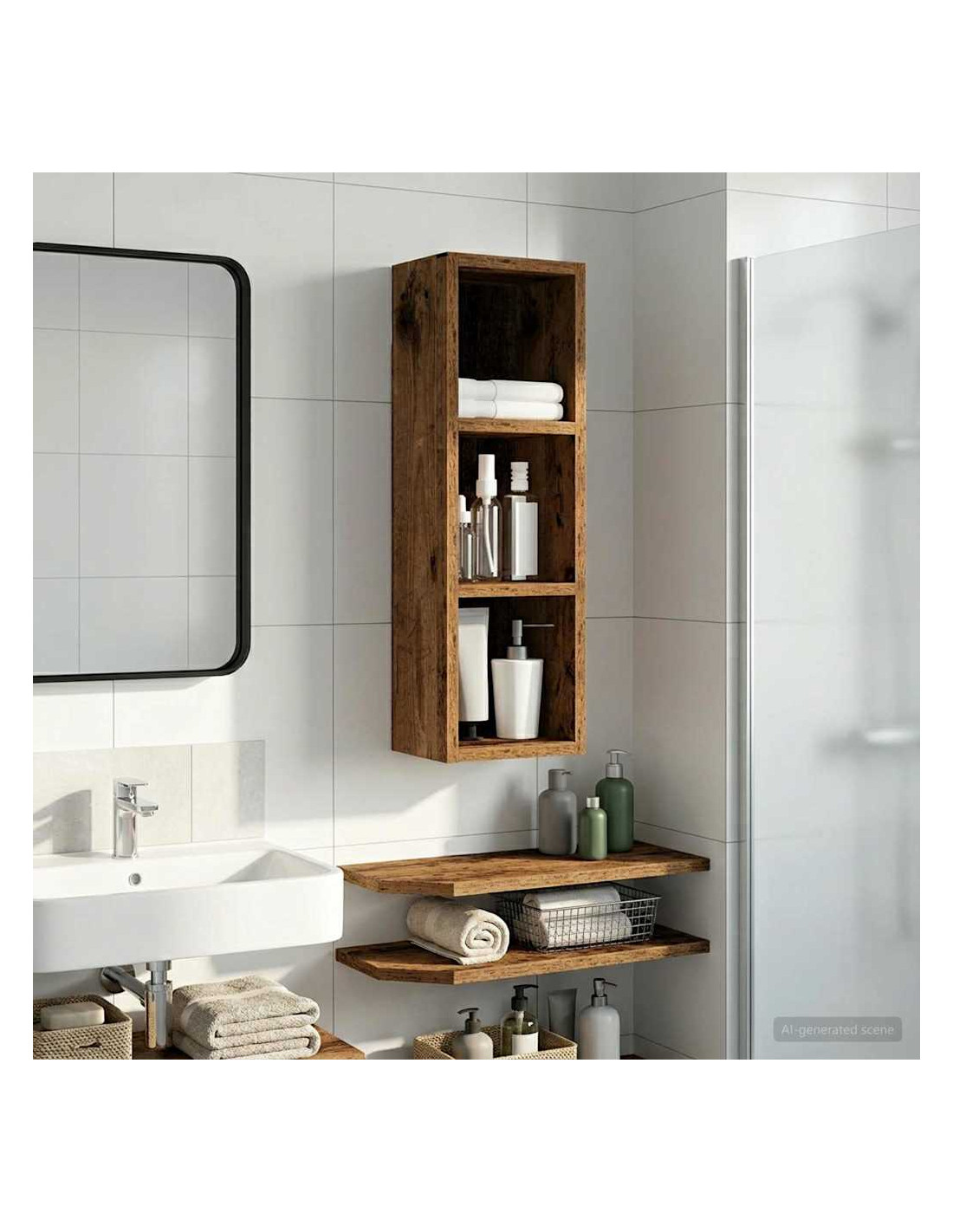 Questo mobiletto bagno moderno è la soluzione ideale per chi cerca uno stoccaggio elegante e minimalista. Il design a muro è perfetto per bagni piccoli dove lo spazio è limitato, rendendolo un'ottima scelta per case moderne. Le linee pulite e la forma rettangolare migliorano ogni stile d'arredamento, fungendo da elemento pratico e bello da vedere. Materiali: Realizzato in legno ingegnerizzato, è robusto e resistente all'umidità, mantenendo un aspetto estetico gradevole e moderno. Componenti inclusi: Include ripiani pratici, perfetti per riporre vari articoli da bagno con facilità, tenendoli a portata di mano. Caratteristiche / Funzione / Design: Questo mobiletto a muro è studiato per ottimizzare lo spazio, aggiungendo ampie possibilità di stoccaggio senza ingombrare il pavimento. Usi consigliati: Ideale per bagni che necessitano di maggiore spazio di stoccaggio, perfetto per asciugamani, articoli da toeletta e altre necessità. Si inserisce bene in spazi compatti. Manutenzione: Pulisci le superfici con un panno umido e usa prodotti delicati per preservarne la qualità e il design nel tempo.