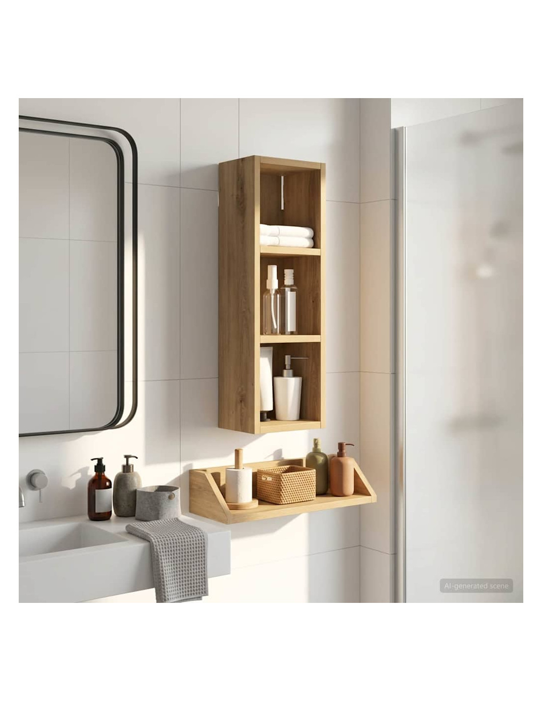 Questo mobiletto bagno moderno è la soluzione ideale per chi cerca uno stoccaggio elegante e minimalista. Il design a muro è perfetto per bagni piccoli dove lo spazio è limitato, rendendolo un'ottima scelta per case moderne. Le linee pulite e la forma rettangolare migliorano ogni stile d'arredamento, fungendo da elemento pratico e bello da vedere. Materiali: Realizzato in legno ingegnerizzato, è robusto e resistente all'umidità, mantenendo un aspetto estetico gradevole e moderno. Componenti inclusi: Include ripiani pratici, perfetti per riporre vari articoli da bagno con facilità, tenendoli a portata di mano. Caratteristiche / Funzione / Design: Questo mobiletto a muro è studiato per ottimizzare lo spazio, aggiungendo ampie possibilità di stoccaggio senza ingombrare il pavimento. Usi consigliati: Ideale per bagni che necessitano di maggiore spazio di stoccaggio, perfetto per asciugamani, articoli da toeletta e altre necessità. Si inserisce bene in spazi compatti. Manutenzione: Pulisci le superfici con un panno umido e usa prodotti delicati per preservarne la qualità e il design nel tempo.
