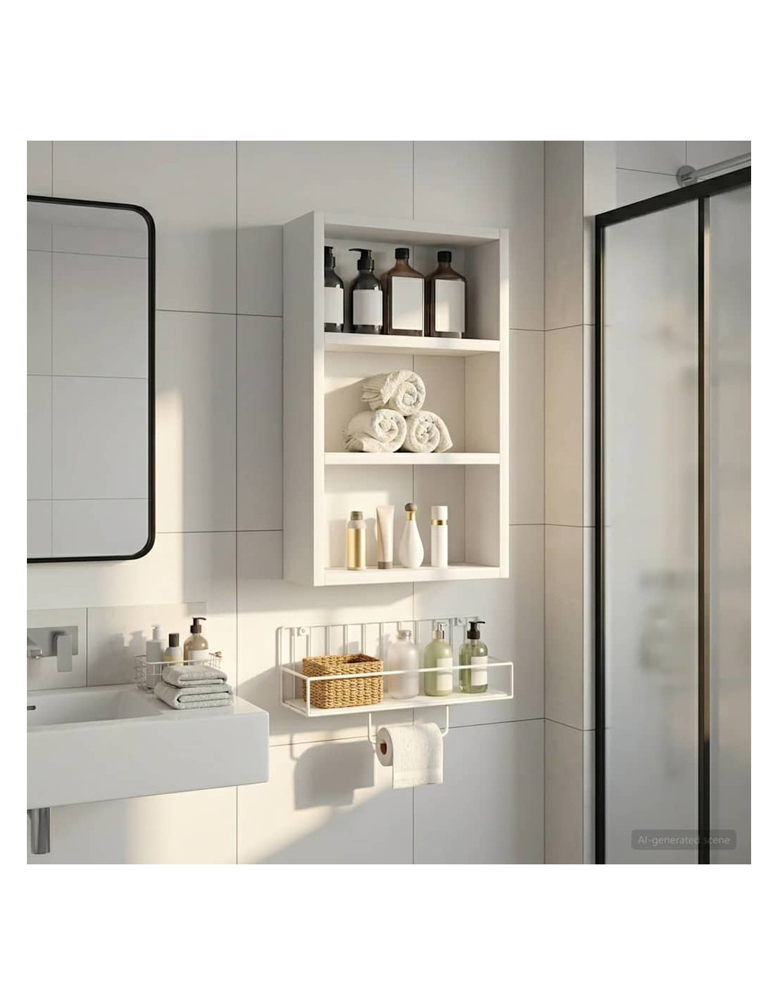 Questo mobiletto bagno moderno è la soluzione ideale per chi cerca uno stoccaggio elegante e minimalista. Il design a muro è perfetto per bagni piccoli dove lo spazio è limitato, rendendolo un'ottima scelta per case moderne. Le linee pulite e la forma rettangolare migliorano ogni stile d'arredamento, fungendo da elemento pratico e bello da vedere. Materiali: Realizzato in legno ingegnerizzato, è robusto e resistente all'umidità, mantenendo un aspetto estetico gradevole e moderno. Componenti inclusi: Include ripiani pratici, perfetti per riporre vari articoli da bagno con facilità, tenendoli a portata di mano. Caratteristiche / Funzione / Design: Questo mobiletto a muro è studiato per ottimizzare lo spazio, aggiungendo ampie possibilità di stoccaggio senza ingombrare il pavimento. Usi consigliati: Ideale per bagni che necessitano di maggiore spazio di stoccaggio, perfetto per asciugamani, articoli da toeletta e altre necessità. Si inserisce bene in spazi compatti. Manutenzione: Pulisci le superfici con un panno umido e usa prodotti delicati per preservarne la qualità e il design nel tempo.