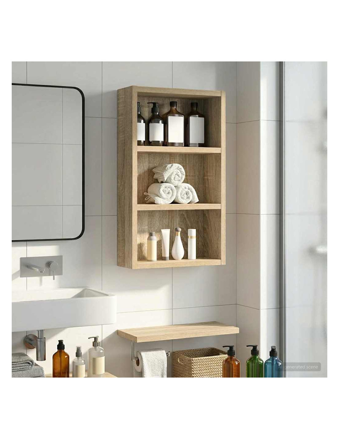 Questo mobiletto bagno moderno è la soluzione ideale per chi cerca uno stoccaggio elegante e minimalista. Il design a muro è perfetto per bagni piccoli dove lo spazio è limitato, rendendolo un'ottima scelta per case moderne. Le linee pulite e la forma rettangolare migliorano ogni stile d'arredamento, fungendo da elemento pratico e bello da vedere. Materiali: Realizzato in legno ingegnerizzato, è robusto e resistente all'umidità, mantenendo un aspetto estetico gradevole e moderno. Componenti inclusi: Include ripiani pratici, perfetti per riporre vari articoli da bagno con facilità, tenendoli a portata di mano. Caratteristiche / Funzione / Design: Questo mobiletto a muro è studiato per ottimizzare lo spazio, aggiungendo ampie possibilità di stoccaggio senza ingombrare il pavimento. Usi consigliati: Ideale per bagni che necessitano di maggiore spazio di stoccaggio, perfetto per asciugamani, articoli da toeletta e altre necessità. Si inserisce bene in spazi compatti. Manutenzione: Pulisci le superfici con un panno umido e usa prodotti delicati per preservarne la qualità e il design nel tempo.