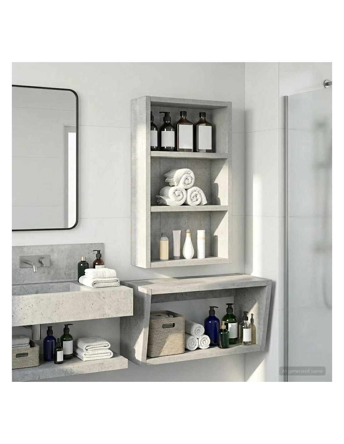 Questo mobiletto bagno moderno è la soluzione ideale per chi cerca uno stoccaggio elegante e minimalista. Il design a muro è perfetto per bagni piccoli dove lo spazio è limitato, rendendolo un'ottima scelta per case moderne. Le linee pulite e la forma rettangolare migliorano ogni stile d'arredamento, fungendo da elemento pratico e bello da vedere. Materiali: Realizzato in legno ingegnerizzato, è robusto e resistente all'umidità, mantenendo un aspetto estetico gradevole e moderno. Componenti inclusi: Include ripiani pratici, perfetti per riporre vari articoli da bagno con facilità, tenendoli a portata di mano. Caratteristiche / Funzione / Design: Questo mobiletto a muro è studiato per ottimizzare lo spazio, aggiungendo ampie possibilità di stoccaggio senza ingombrare il pavimento. Usi consigliati: Ideale per bagni che necessitano di maggiore spazio di stoccaggio, perfetto per asciugamani, articoli da toeletta e altre necessità. Si inserisce bene in spazi compatti. Manutenzione: Pulisci le superfici con un panno umido e usa prodotti delicati per preservarne la qualità e il design nel tempo.
