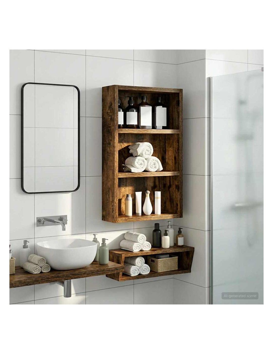 Questo mobiletto bagno moderno è la soluzione ideale per chi cerca uno stoccaggio elegante e minimalista. Il design a muro è perfetto per bagni piccoli dove lo spazio è limitato, rendendolo un'ottima scelta per case moderne. Le linee pulite e la forma rettangolare migliorano ogni stile d'arredamento, fungendo da elemento pratico e bello da vedere. Materiali: Realizzato in legno ingegnerizzato, è robusto e resistente all'umidità, mantenendo un aspetto estetico gradevole e moderno. Componenti inclusi: Include ripiani pratici, perfetti per riporre vari articoli da bagno con facilità, tenendoli a portata di mano. Caratteristiche / Funzione / Design: Questo mobiletto a muro è studiato per ottimizzare lo spazio, aggiungendo ampie possibilità di stoccaggio senza ingombrare il pavimento. Usi consigliati: Ideale per bagni che necessitano di maggiore spazio di stoccaggio, perfetto per asciugamani, articoli da toeletta e altre necessità. Si inserisce bene in spazi compatti. Manutenzione: Pulisci le superfici con un panno umido e usa prodotti delicati per preservarne la qualità e il design nel tempo.