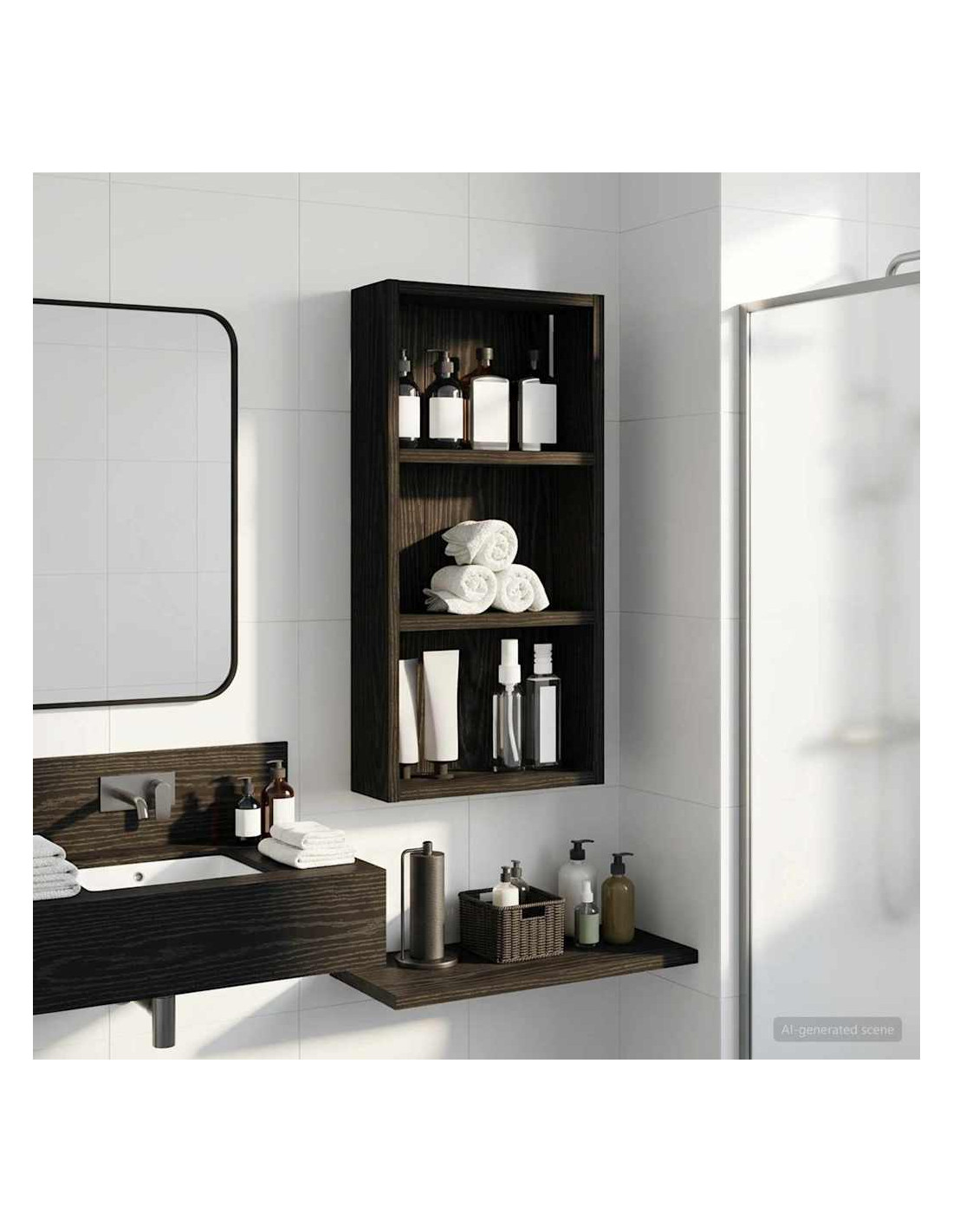 Questo mobiletto bagno moderno è la soluzione ideale per chi cerca uno stoccaggio elegante e minimalista. Il design a muro è perfetto per bagni piccoli dove lo spazio è limitato, rendendolo un'ottima scelta per case moderne. Le linee pulite e la forma rettangolare migliorano ogni stile d'arredamento, fungendo da elemento pratico e bello da vedere. Materiali: Realizzato in legno ingegnerizzato, è robusto e resistente all'umidità, mantenendo un aspetto estetico gradevole e moderno. Componenti inclusi: Include ripiani pratici, perfetti per riporre vari articoli da bagno con facilità, tenendoli a portata di mano. Caratteristiche / Funzione / Design: Questo mobiletto a muro è studiato per ottimizzare lo spazio, aggiungendo ampie possibilità di stoccaggio senza ingombrare il pavimento. Usi consigliati: Ideale per bagni che necessitano di maggiore spazio di stoccaggio, perfetto per asciugamani, articoli da toeletta e altre necessità. Si inserisce bene in spazi compatti. Manutenzione: Pulisci le superfici con un panno umido e usa prodotti delicati per preservarne la qualità e il design nel tempo.