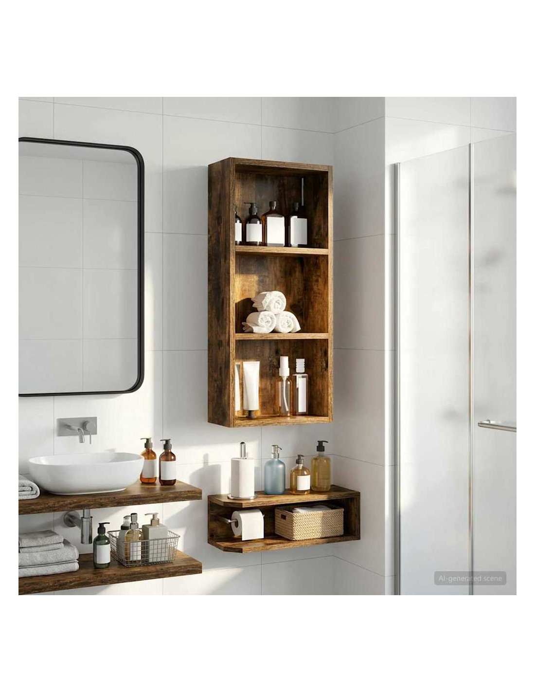 Questo mobiletto bagno moderno è la soluzione ideale per chi cerca uno stoccaggio elegante e minimalista. Il design a muro è perfetto per bagni piccoli dove lo spazio è limitato, rendendolo un'ottima scelta per case moderne. Le linee pulite e la forma rettangolare migliorano ogni stile d'arredamento, fungendo da elemento pratico e bello da vedere. Materiali: Realizzato in legno ingegnerizzato, è robusto e resistente all'umidità, mantenendo un aspetto estetico gradevole e moderno. Componenti inclusi: Include ripiani pratici, perfetti per riporre vari articoli da bagno con facilità, tenendoli a portata di mano. Caratteristiche / Funzione / Design: Questo mobiletto a muro è studiato per ottimizzare lo spazio, aggiungendo ampie possibilità di stoccaggio senza ingombrare il pavimento. Usi consigliati: Ideale per bagni che necessitano di maggiore spazio di stoccaggio, perfetto per asciugamani, articoli da toeletta e altre necessità. Si inserisce bene in spazi compatti. Manutenzione: Pulisci le superfici con un panno umido e usa prodotti delicati per preservarne la qualità e il design nel tempo.