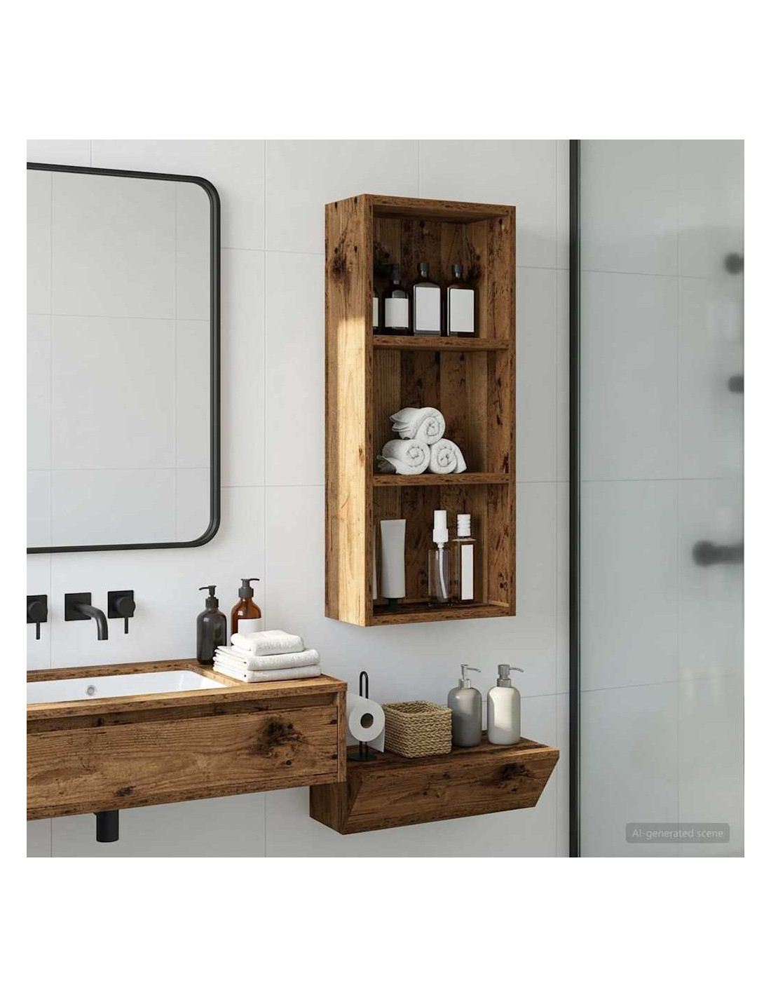 Questo mobiletto bagno moderno è la soluzione ideale per chi cerca uno stoccaggio elegante e minimalista. Il design a muro è perfetto per bagni piccoli dove lo spazio è limitato, rendendolo un'ottima scelta per case moderne. Le linee pulite e la forma rettangolare migliorano ogni stile d'arredamento, fungendo da elemento pratico e bello da vedere. Materiali: Realizzato in legno ingegnerizzato, è robusto e resistente all'umidità, mantenendo un aspetto estetico gradevole e moderno. Componenti inclusi: Include ripiani pratici, perfetti per riporre vari articoli da bagno con facilità, tenendoli a portata di mano. Caratteristiche / Funzione / Design: Questo mobiletto a muro è studiato per ottimizzare lo spazio, aggiungendo ampie possibilità di stoccaggio senza ingombrare il pavimento. Usi consigliati: Ideale per bagni che necessitano di maggiore spazio di stoccaggio, perfetto per asciugamani, articoli da toeletta e altre necessità. Si inserisce bene in spazi compatti. Manutenzione: Pulisci le superfici con un panno umido e usa prodotti delicati per preservarne la qualità e il design nel tempo.