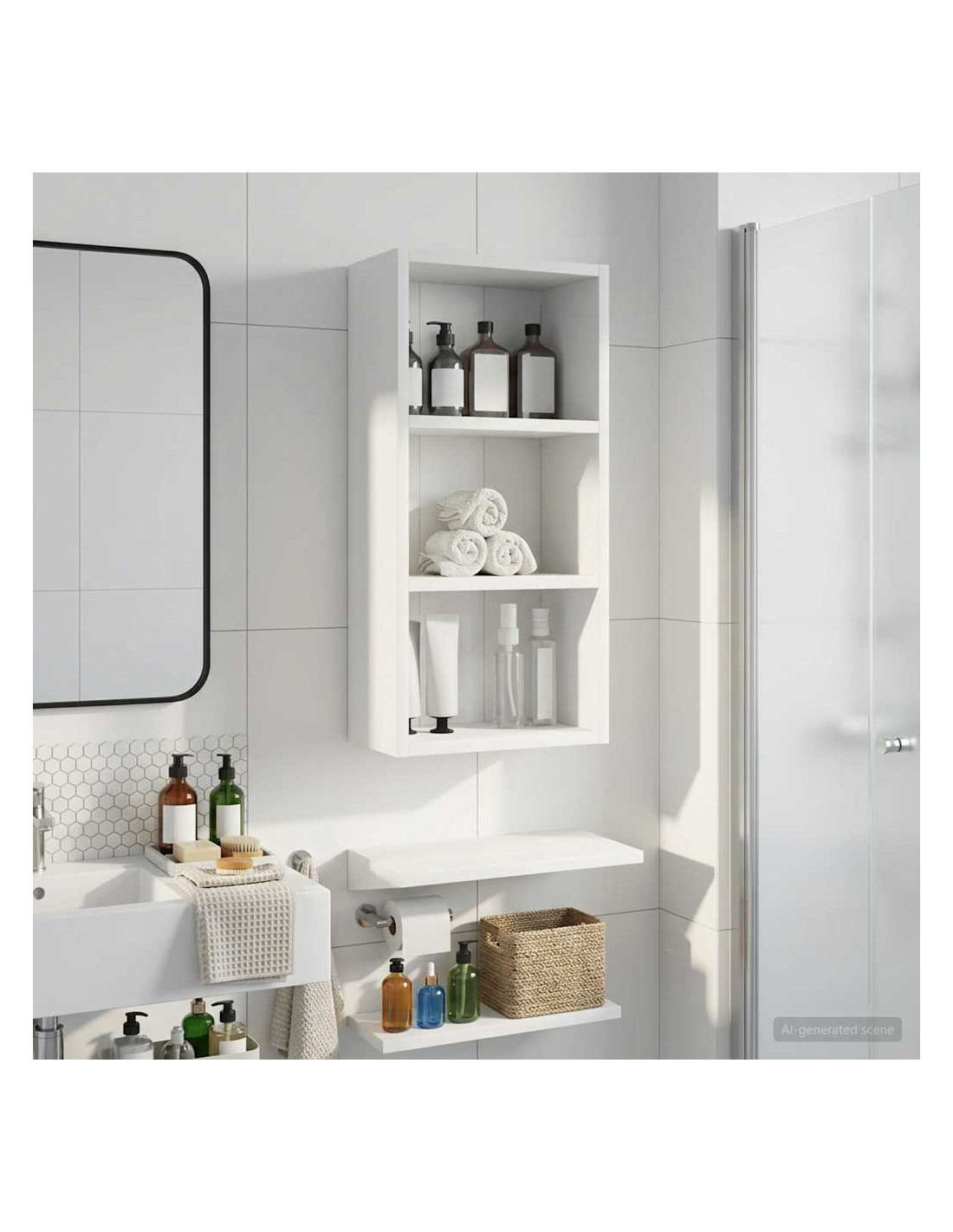 Questo mobiletto bagno moderno è la soluzione ideale per chi cerca uno stoccaggio elegante e minimalista. Il design a muro è perfetto per bagni piccoli dove lo spazio è limitato, rendendolo un'ottima scelta per case moderne. Le linee pulite e la forma rettangolare migliorano ogni stile d'arredamento, fungendo da elemento pratico e bello da vedere. Materiali: Realizzato in legno ingegnerizzato, è robusto e resistente all'umidità, mantenendo un aspetto estetico gradevole e moderno. Componenti inclusi: Include ripiani pratici, perfetti per riporre vari articoli da bagno con facilità, tenendoli a portata di mano. Caratteristiche / Funzione / Design: Questo mobiletto a muro è studiato per ottimizzare lo spazio, aggiungendo ampie possibilità di stoccaggio senza ingombrare il pavimento. Usi consigliati: Ideale per bagni che necessitano di maggiore spazio di stoccaggio, perfetto per asciugamani, articoli da toeletta e altre necessità. Si inserisce bene in spazi compatti. Manutenzione: Pulisci le superfici con un panno umido e usa prodotti delicati per preservarne la qualità e il design nel tempo.
