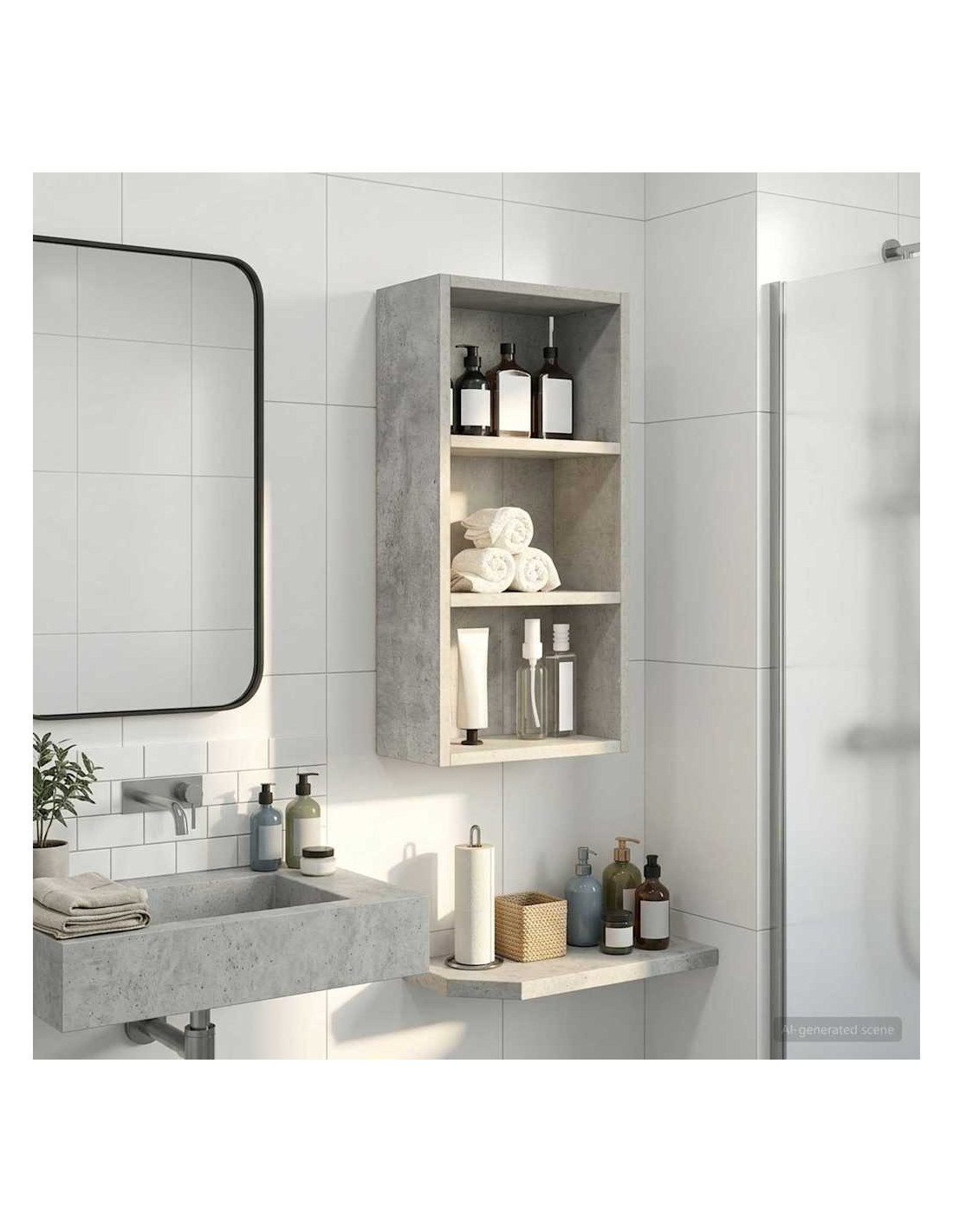 Questo mobiletto bagno moderno è la soluzione ideale per chi cerca uno stoccaggio elegante e minimalista. Il design a muro è perfetto per bagni piccoli dove lo spazio è limitato, rendendolo un'ottima scelta per case moderne. Le linee pulite e la forma rettangolare migliorano ogni stile d'arredamento, fungendo da elemento pratico e bello da vedere. Materiali: Realizzato in legno ingegnerizzato, è robusto e resistente all'umidità, mantenendo un aspetto estetico gradevole e moderno. Componenti inclusi: Include ripiani pratici, perfetti per riporre vari articoli da bagno con facilità, tenendoli a portata di mano. Caratteristiche / Funzione / Design: Questo mobiletto a muro è studiato per ottimizzare lo spazio, aggiungendo ampie possibilità di stoccaggio senza ingombrare il pavimento. Usi consigliati: Ideale per bagni che necessitano di maggiore spazio di stoccaggio, perfetto per asciugamani, articoli da toeletta e altre necessità. Si inserisce bene in spazi compatti. Manutenzione: Pulisci le superfici con un panno umido e usa prodotti delicati per preservarne la qualità e il design nel tempo.