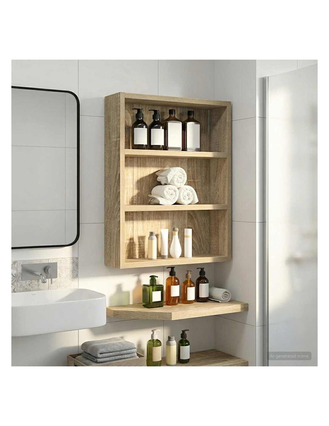 Questo mobiletto bagno moderno è la soluzione ideale per chi cerca uno stoccaggio elegante e minimalista. Il design a muro è perfetto per bagni piccoli dove lo spazio è limitato, rendendolo un'ottima scelta per case moderne. Le linee pulite e la forma rettangolare migliorano ogni stile d'arredamento, fungendo da elemento pratico e bello da vedere. Materiali: Realizzato in legno ingegnerizzato, è robusto e resistente all'umidità, mantenendo un aspetto estetico gradevole e moderno. Componenti inclusi: Include ripiani pratici, perfetti per riporre vari articoli da bagno con facilità, tenendoli a portata di mano. Caratteristiche / Funzione / Design: Questo mobiletto a muro è studiato per ottimizzare lo spazio, aggiungendo ampie possibilità di stoccaggio senza ingombrare il pavimento. Usi consigliati: Ideale per bagni che necessitano di maggiore spazio di stoccaggio, perfetto per asciugamani, articoli da toeletta e altre necessità. Si inserisce bene in spazi compatti. Manutenzione: Pulisci le superfici con un panno umido e usa prodotti delicati per preservarne la qualità e il design nel tempo.