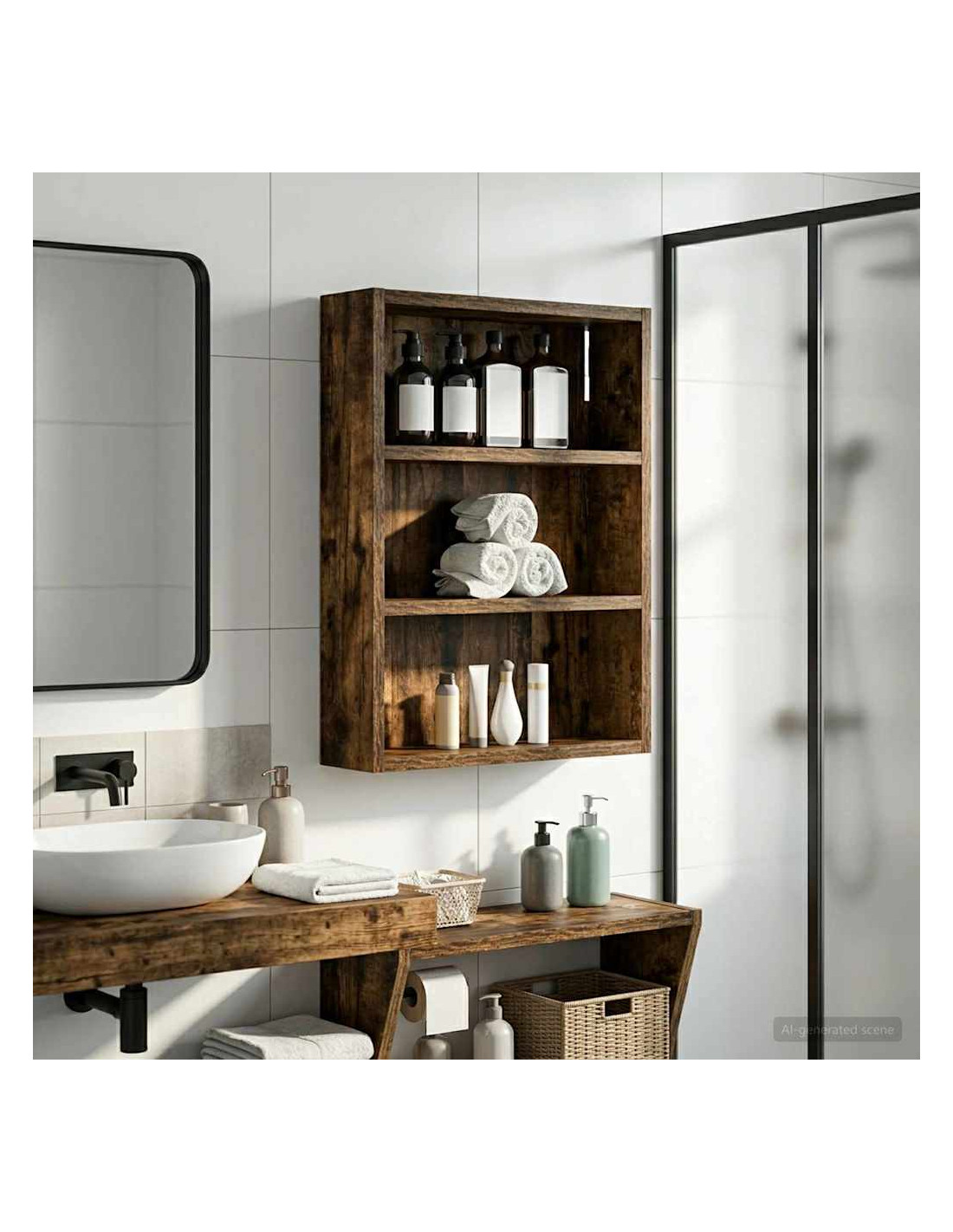 Questo mobiletto bagno moderno è la soluzione ideale per chi cerca uno stoccaggio elegante e minimalista. Il design a muro è perfetto per bagni piccoli dove lo spazio è limitato, rendendolo un'ottima scelta per case moderne. Le linee pulite e la forma rettangolare migliorano ogni stile d'arredamento, fungendo da elemento pratico e bello da vedere. Materiali: Realizzato in legno ingegnerizzato, è robusto e resistente all'umidità, mantenendo un aspetto estetico gradevole e moderno. Componenti inclusi: Include ripiani pratici, perfetti per riporre vari articoli da bagno con facilità, tenendoli a portata di mano. Caratteristiche / Funzione / Design: Questo mobiletto a muro è studiato per ottimizzare lo spazio, aggiungendo ampie possibilità di stoccaggio senza ingombrare il pavimento. Usi consigliati: Ideale per bagni che necessitano di maggiore spazio di stoccaggio, perfetto per asciugamani, articoli da toeletta e altre necessità. Si inserisce bene in spazi compatti. Manutenzione: Pulisci le superfici con un panno umido e usa prodotti delicati per preservarne la qualità e il design nel tempo.
