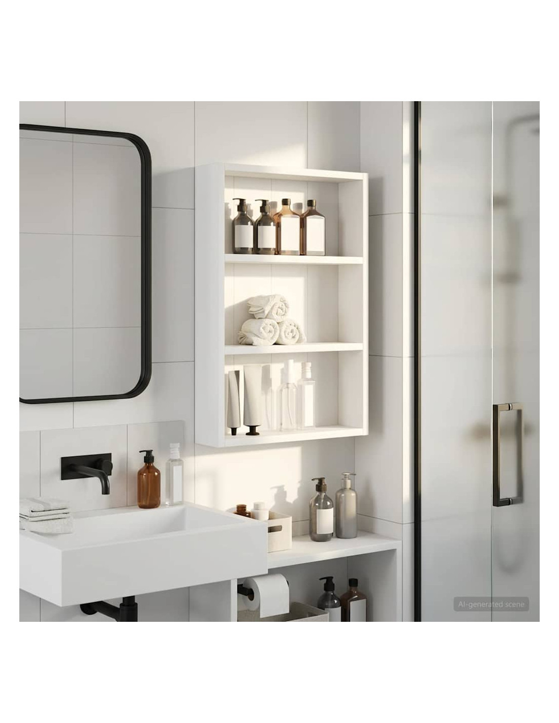 Questo mobiletto bagno moderno è la soluzione ideale per chi cerca uno stoccaggio elegante e minimalista. Il design a muro è perfetto per bagni piccoli dove lo spazio è limitato, rendendolo un'ottima scelta per case moderne. Le linee pulite e la forma rettangolare migliorano ogni stile d'arredamento, fungendo da elemento pratico e bello da vedere. Materiali: Realizzato in legno ingegnerizzato, è robusto e resistente all'umidità, mantenendo un aspetto estetico gradevole e moderno. Componenti inclusi: Include ripiani pratici, perfetti per riporre vari articoli da bagno con facilità, tenendoli a portata di mano. Caratteristiche / Funzione / Design: Questo mobiletto a muro è studiato per ottimizzare lo spazio, aggiungendo ampie possibilità di stoccaggio senza ingombrare il pavimento. Usi consigliati: Ideale per bagni che necessitano di maggiore spazio di stoccaggio, perfetto per asciugamani, articoli da toeletta e altre necessità. Si inserisce bene in spazi compatti. Manutenzione: Pulisci le superfici con un panno umido e usa prodotti delicati per preservarne la qualità e il design nel tempo.